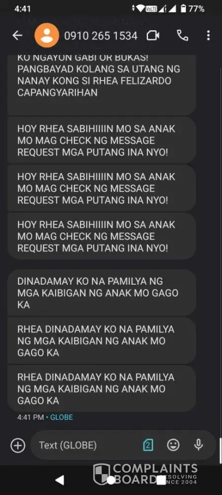Ako po si Rhea C. Felizardo na nag complaint laban sa Moregold loan Shark lending apps na matatagpuan sa Google play store at lumalabas sa mga advertisement. Ako po ay nakahiram sa Moregold lending application na aking na download sa kadahilan na ako po ay gipit sa halagang 3,500 na aking nahiram ang akin pong natanggap ay 2 libo lamang po na may tumatagal ng 3 days at kapag extension naman po ang aking binayaran ay nagbibigay lang po ng 1 linggong palugit hanggang sa hindi kuna po namalayan na lumaki na ang aking nahiram dahil ooperan kanila ulit manghiram nito pong April 10 ng hindi na po ako makabayad dahil sa lumaki na at wala na akong pambayad. Ang online lending po na ito ay gumawa ng gc sa messenger at inadd lahat ng friends ng anak kong bata pa at nag post ng malalaswang salita na binebenta ang anak ko gamit pangalan ko. at nag post sa social media. Nag try po ako makipag reach out at settlement sa kanila ngunit panay pananakot po ang ginawa nila at pambabastos sa akin. Nawa po akoy inyong matulungan na mahuli at mapawalan bisa ang Moregolds dahil marami pa po silang mabibiktima.