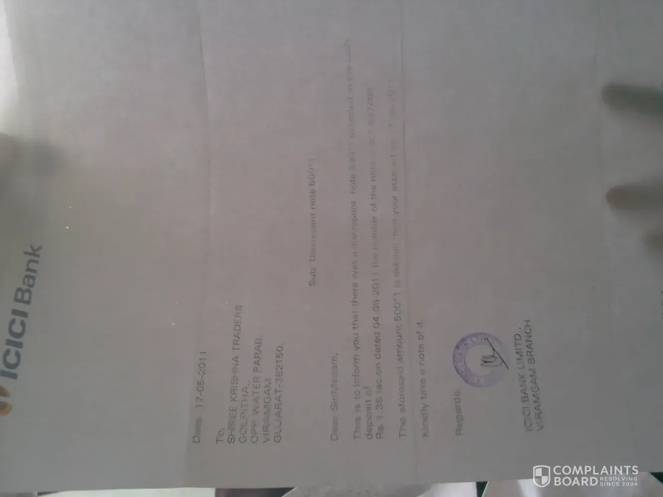 I have an account with ICICI bank and i have deposited amount 135000 on 4/5/2017 and after 13 days they sending they are sending letter that the amount which u have deposited in which there were one discrepant note of 500 which they have directly deducted from my account. As whenever we are going to deposit amount at the bank they are checking the same amount and also checking if any discrepant note is their or not and they are also checking with carefully, after 13 days they are coming and deducting the same. and when asked to their executive they are not giving proper answer and saying it will be deducted from your account.