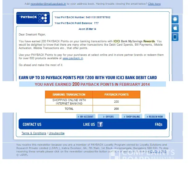 As a consumer I expect some transparacy in each transaction and it should be shown on the screen where I am performing the transaction, in this case payback site. What value add they are providing by giving reward point.