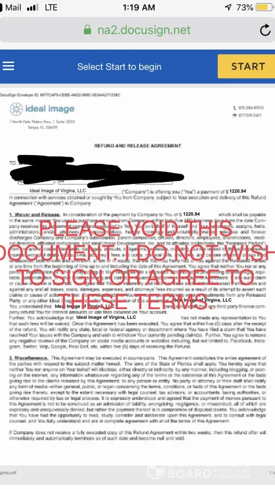 I signed the contract at 10:30 am and on the same day at 1:00pm called to cancel and they refuse to let me. They also claim they have processed the contract already. I have not received any services from them at this time! They have offered me absolutely nothing at this time yet I am bound by a contract signed less than four hours earlier! I feel like I have been severely taken advantage of. I would like to pursue any options I have to protect my money and refuse the service but I fear I am trapped by their contract. I have read many other customers similar experiences with ideal image and believe that there must be something done to protect others from what appears to be a scam.