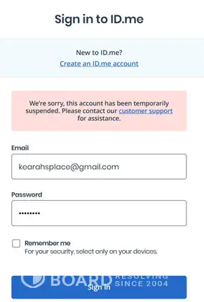 About the idme has suspended my account