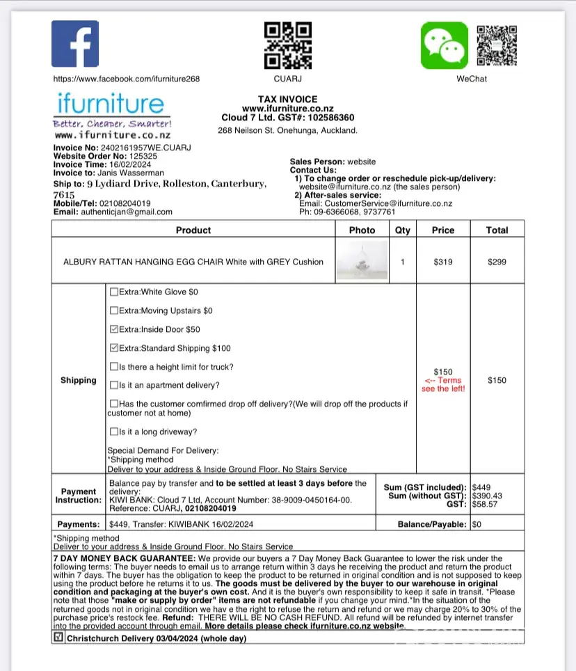 Given these experiences, I am deeply unsatisfied with my interaction with iFurniture. As a customer, I expect a higher standard of service and professionalism.