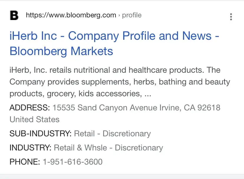 We found clear and detailed contact information for iHerb. The company provides a physical address, phone number, and 2 emails, as well as 4 social media accounts. This demonstrates a commitment to customer service and transparency, which is a positive sign for building trust with customers.