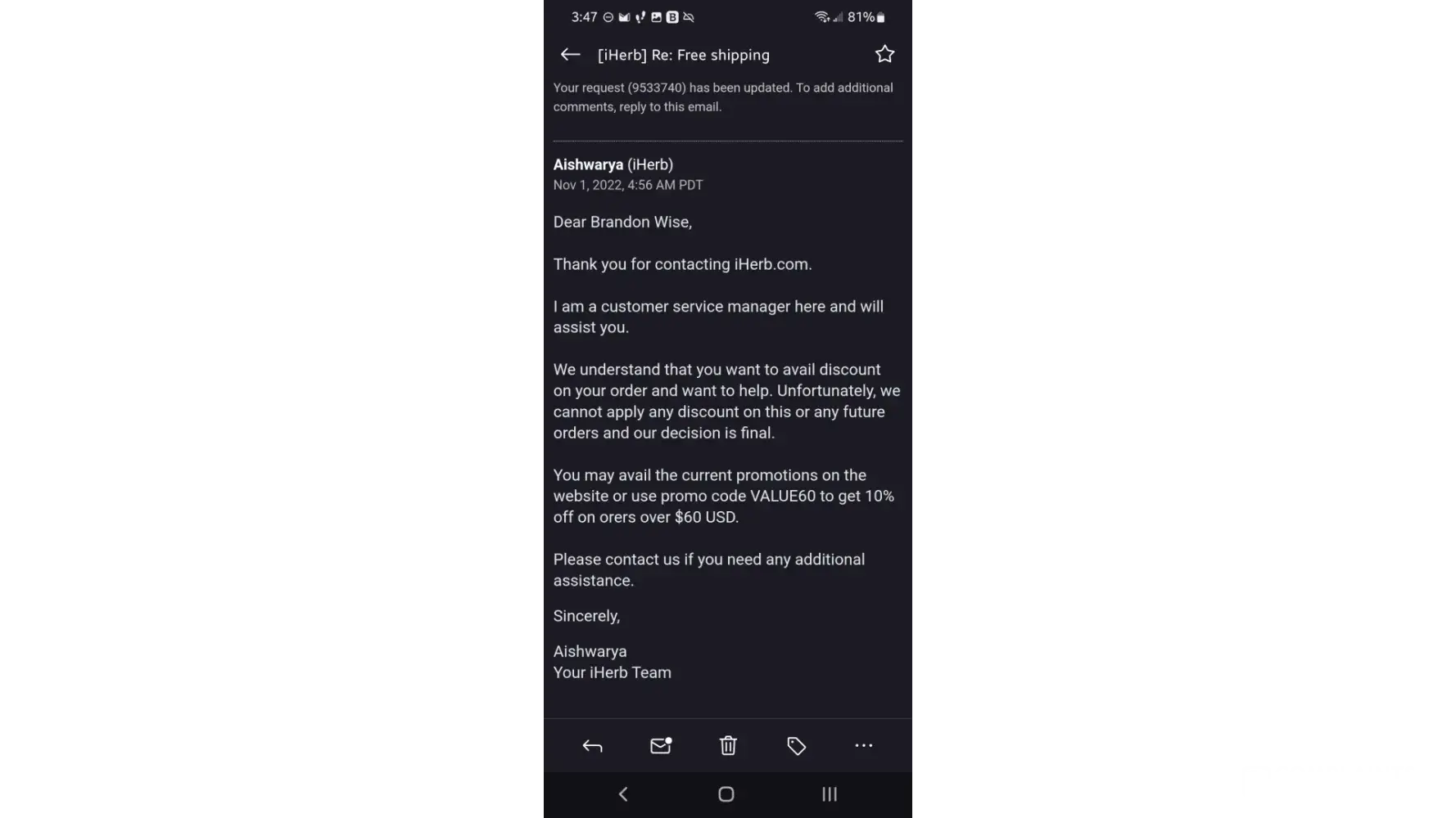 In conclusion, Iherb is a bad company, and I would not recommend shopping with them.