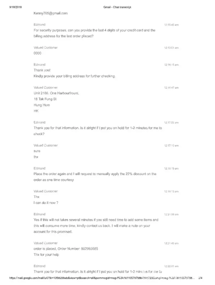 2nd, I reordered ([protected]) and canceled because I found the discount code didn't work.