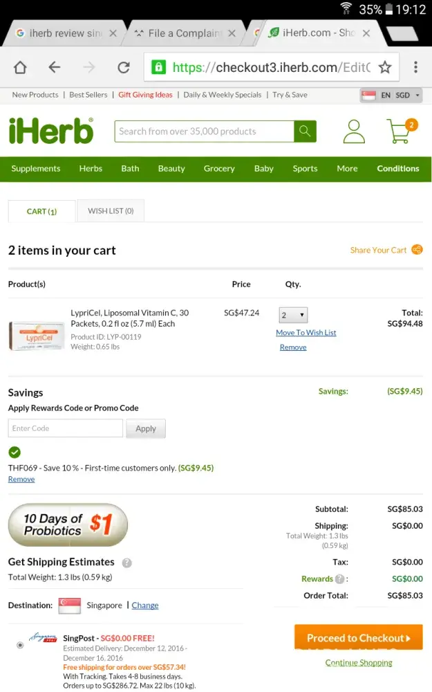 iherb is always deliver their product on time. however, their price is getting higher and higher. not much saving. other websites offer better deal