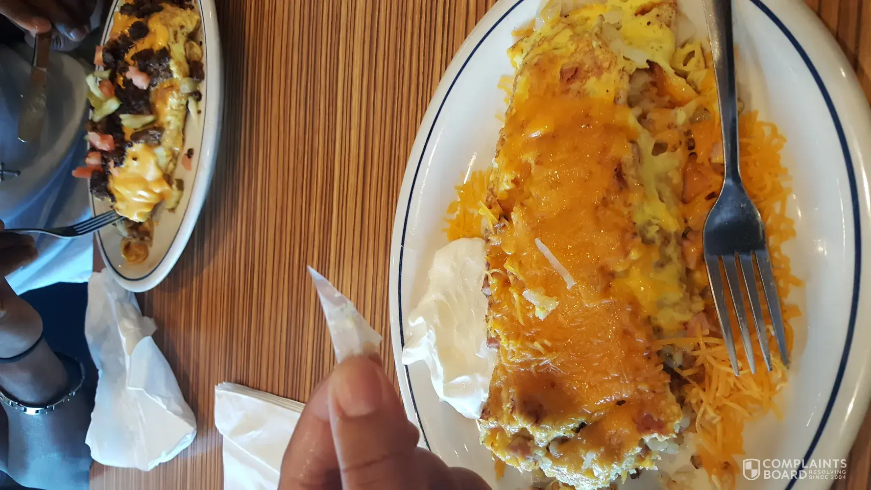 Hello my name is Mariah Rice. Me and my fiance was at ihop yesterday and when i dipped my eggs (omelet) i was chewing on a piece of plastic! I told the manager and they just brushed it off n gabe me 10% off my meal. I was so devastated. I love iHop i recently started goinf about 1 month ago. Because back then people had bad comments about ihop so we never went there til a friend from Tennessee came down to ohio to visit there family and they wanted to go to iHOP for breakfast for there last morning before heading back to Tennessee. We fell in love with the place. We love it! But i just hope he let the person in the back know to be careful for the next person. I also saved a picture i took of it as well. Thank you.