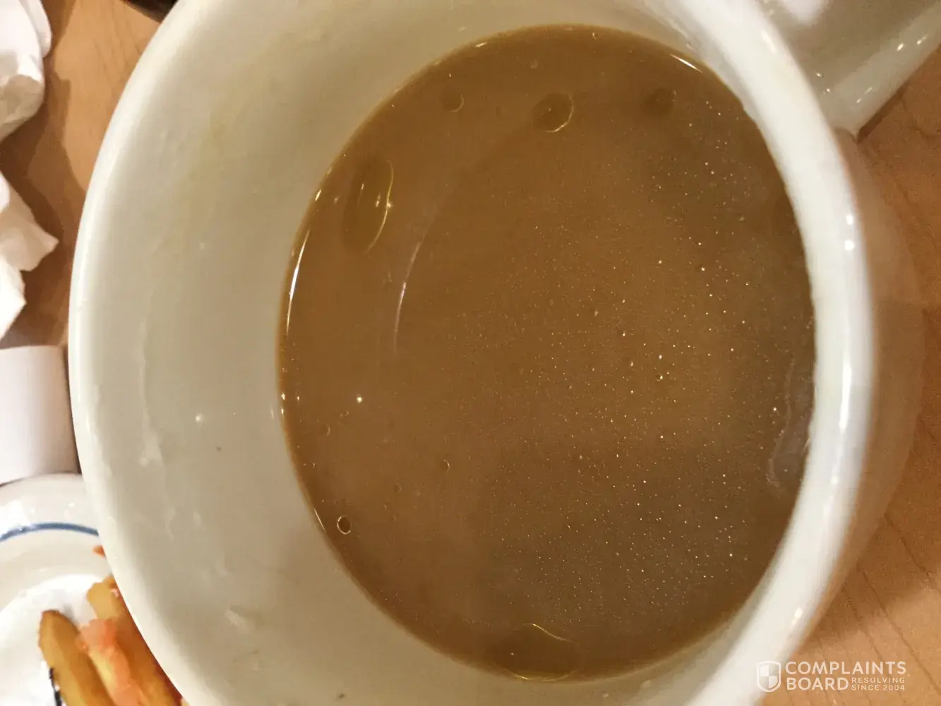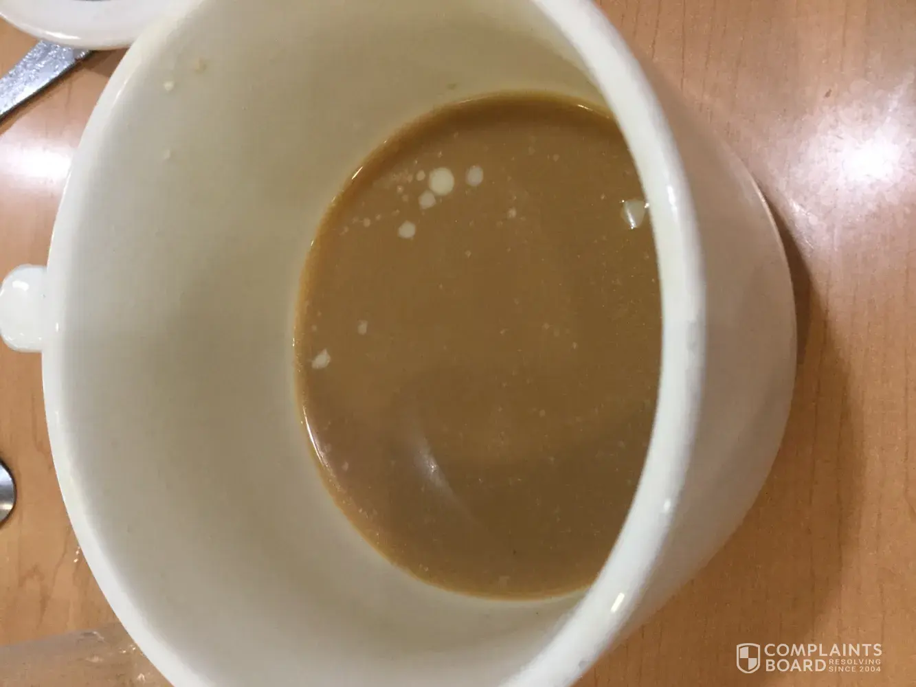 Food: coffee vanilla, coffee mocha: GREASE globules in both coffee cups. When we told the waiter, Sean 153, he said it was the sweetener and brought more coffee. When it got cold, the globules turned white. ugh