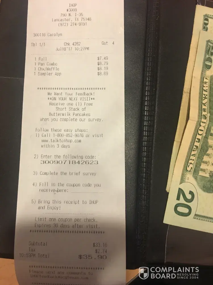 We went to ihop on Belair road in Baltimore maryland thus morning our bill came to 58 and some change we paid 25 in cash and the rest on a visa card they gave me a recipe for the 33 and change signed it then got home and found the 25 dollars was also charged to my account putting it into overdraft. We call the manger who was very rude on the phone with my girlfriend, very dissapointted with the service we received at this location. I feel it could of been avoided but I will never go there again along with anyone in my family I feel like my money should get put back in my account not very happy at all with the manger either