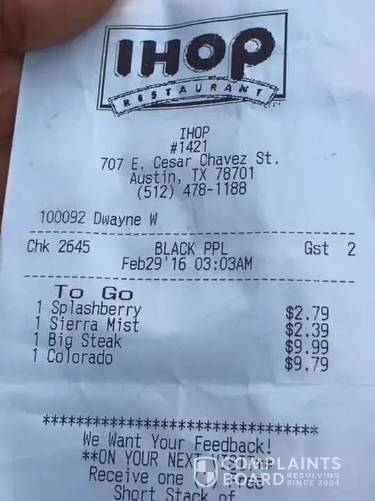 I walked to ihop to get the Two × Two × Two. I walked back home and I started eating. I turned my pancakes around and mold was all over the bottom of both of my pancakes. I called the manager and she accused me of lying. I've never had a problem with ihop, but her accusing me of lying made me come to this. My name is Paris Dinkins and thank you.