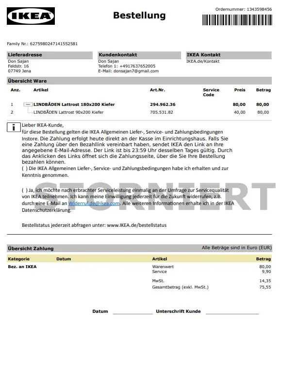 First, IKEA and/or XDE did not contact the customer to monitor if the items were already delivered to arrange the assembly right way. They did not even send the contact details of the assembler beforehand to enable the customer to get a work permit.