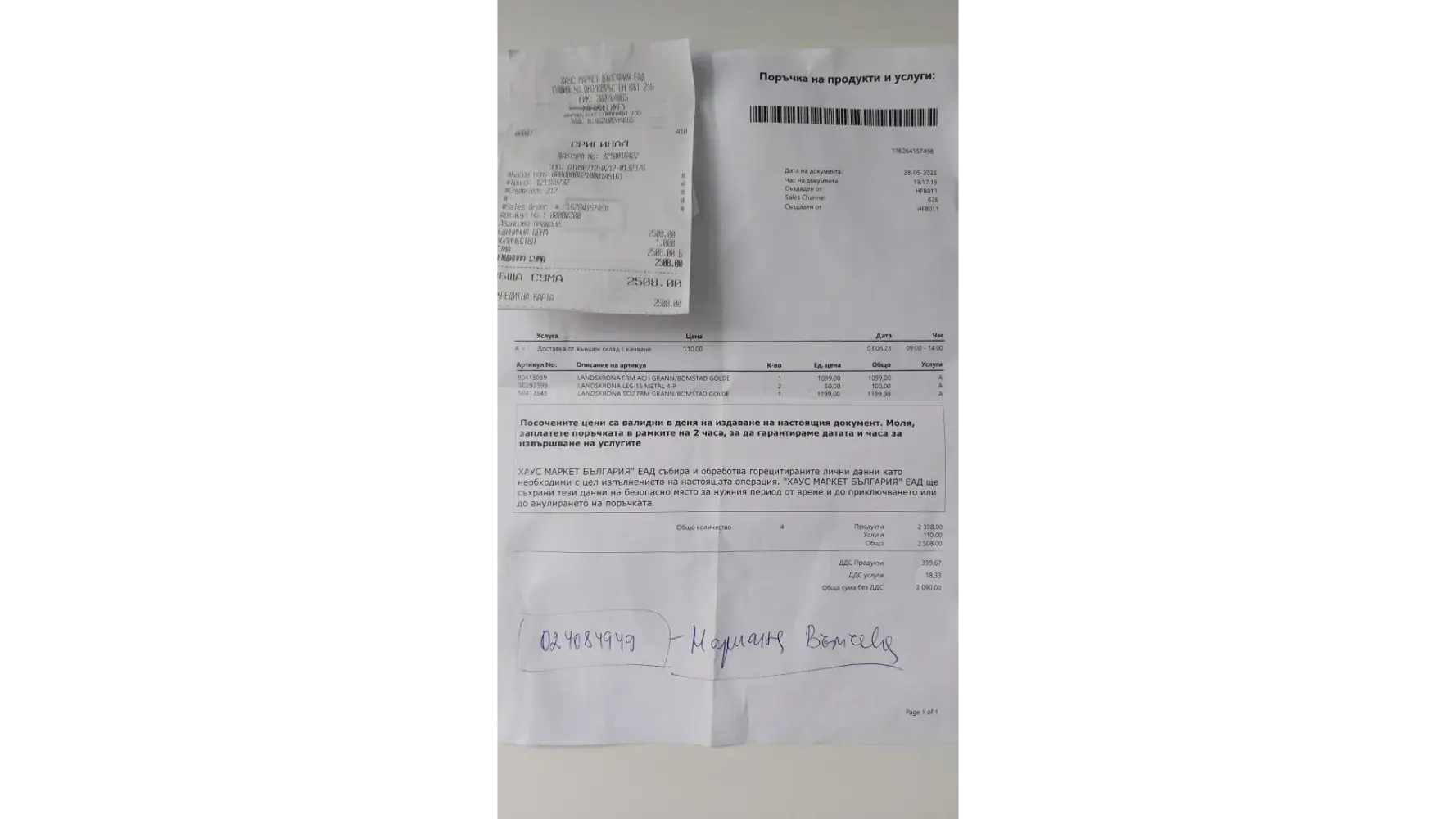 Desired outcome: Delivery today or delivery and assembly for free. Call back, or email or any response. Contacts: +359 [protected], [protected]@gmail.com