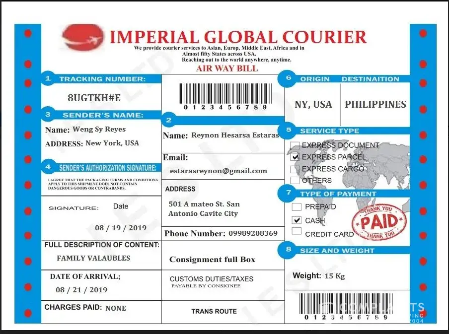 The packaged was coming from UK to Philippines and it was totaly paid by the sender, when the packaged arrived in the Philippines the agent call me that in able to deliver the package i was pay at least 10 000 pesos for the government taxes is it real or a kind of scam