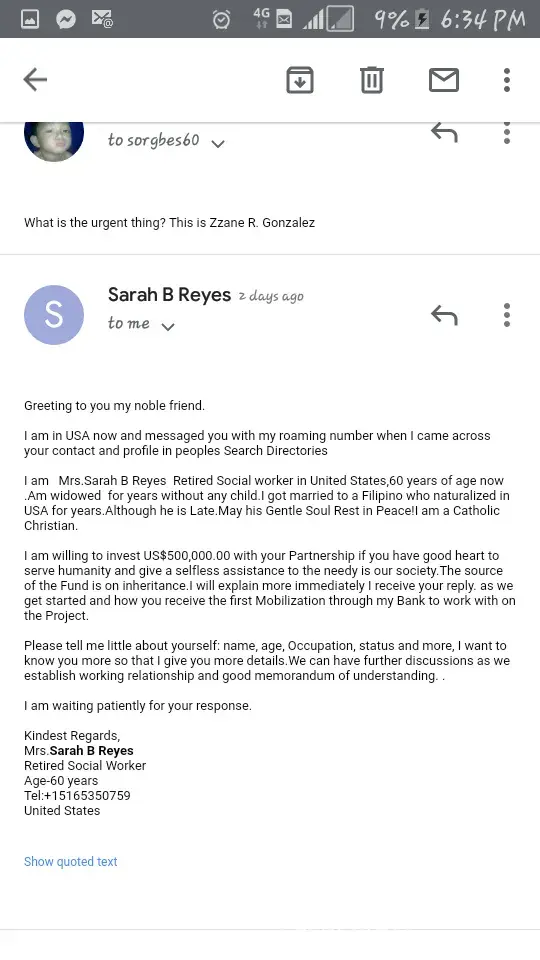 someone sent me an email saying that i wil receive a money using trunk box and found out it's a scam. I hereby ask for your assistance with regards with this scam.