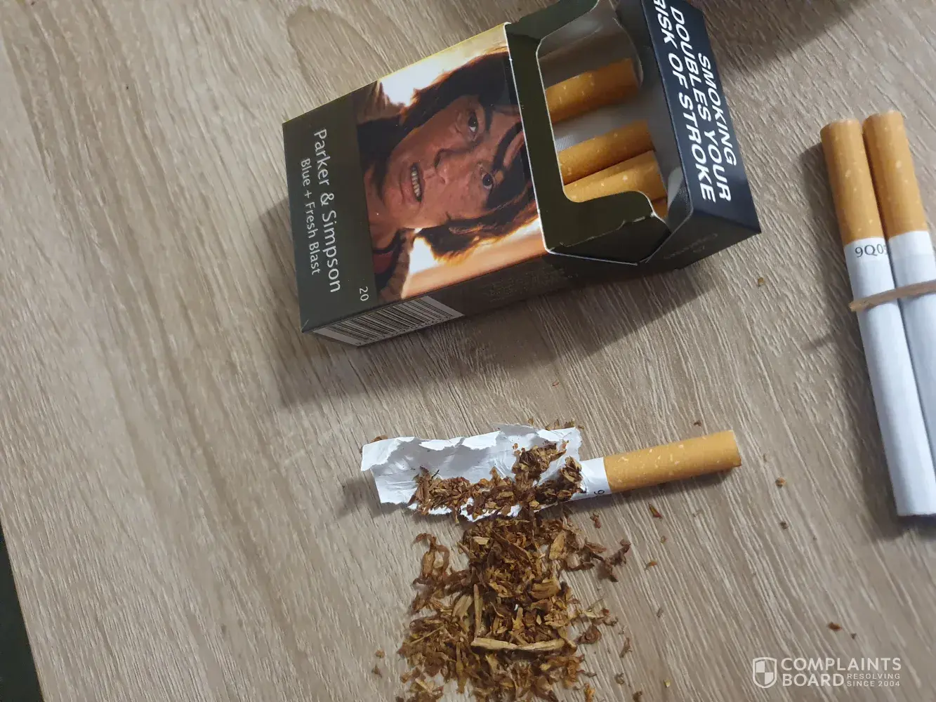 I bought Parker & Simpson 25's blue, I was about half finished a smoke when I flicked my ash the whole smoke came out of the butt, didn't think much of it. Later that night I was driving and lit a smoke before I took off, next thing you know I had the butt in my hand and the smoke was burning through my pants, nearly caused an accident. It's like there is no glue holding the butt to the smoke, pay the extra to have cigarettes and you can't smoke them anyway because they fall apart. NOT HAPPY!
