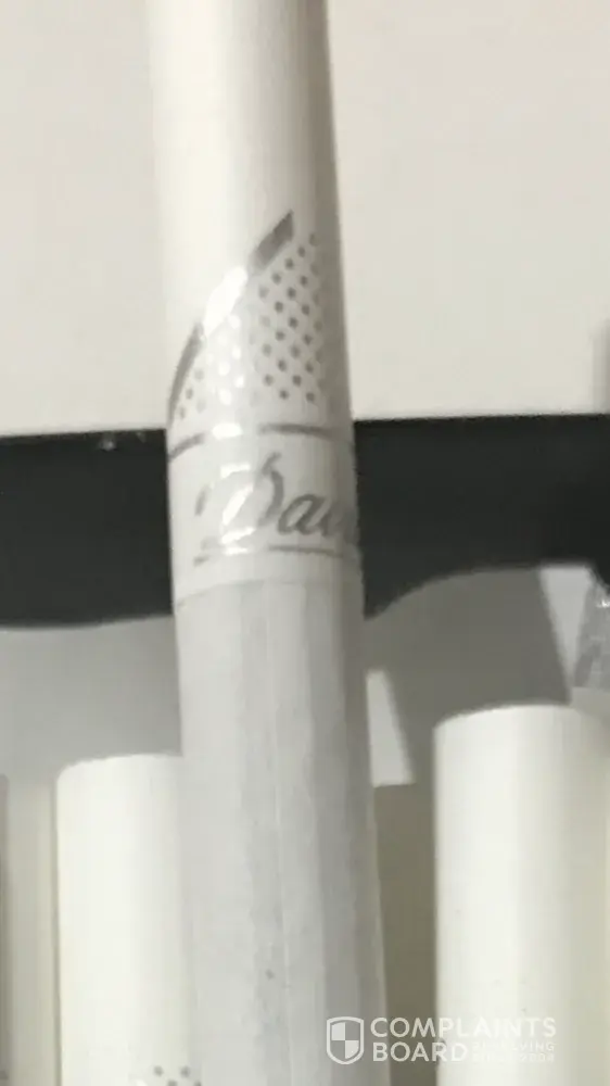 I opened up packet, the colour of cigarettes looked different, thought the company had possibly changed filter colour from brown to white however, after offering a cigarette to my son & daughter-in-law & lighting up one myself, the taste was disgusting, my daughter-in-law inspected the cigarette & found Davidoff written on filter.