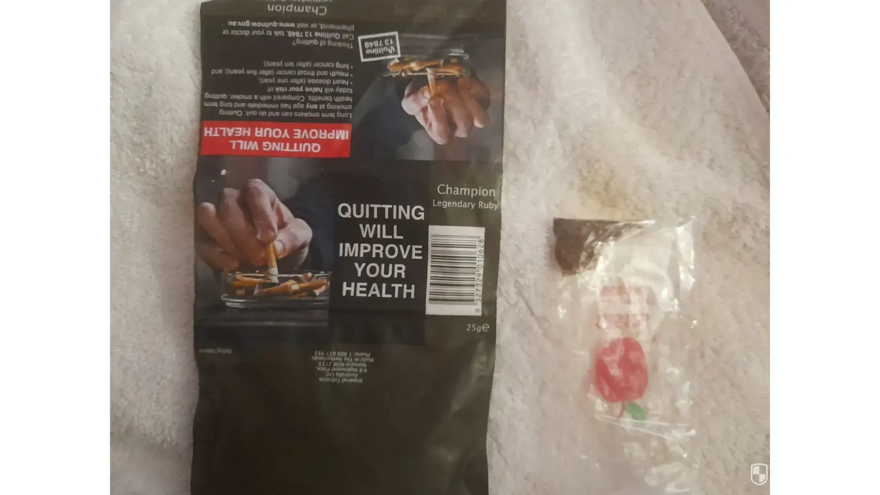 The clump of damaged tobacco was approximately the size of an Aust 20c coin.