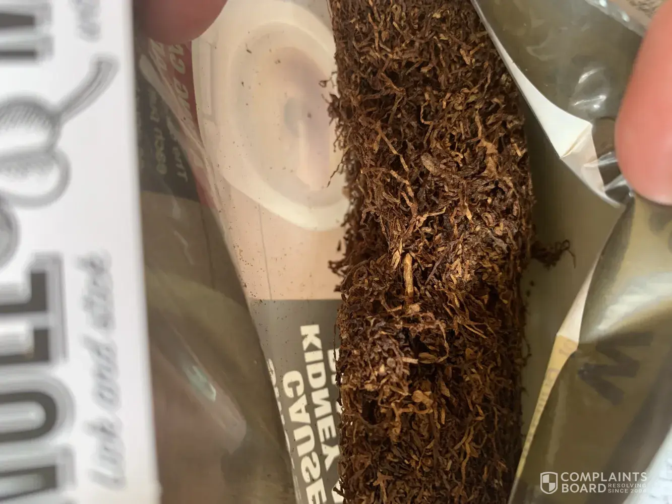 Once opened the tobacco had two very different colours, one dark one light, like the product had two different brands put into one pouch. It taste terrible and I have photos of the product. It's too expensive to not say anything about it and my husband is not happy.
