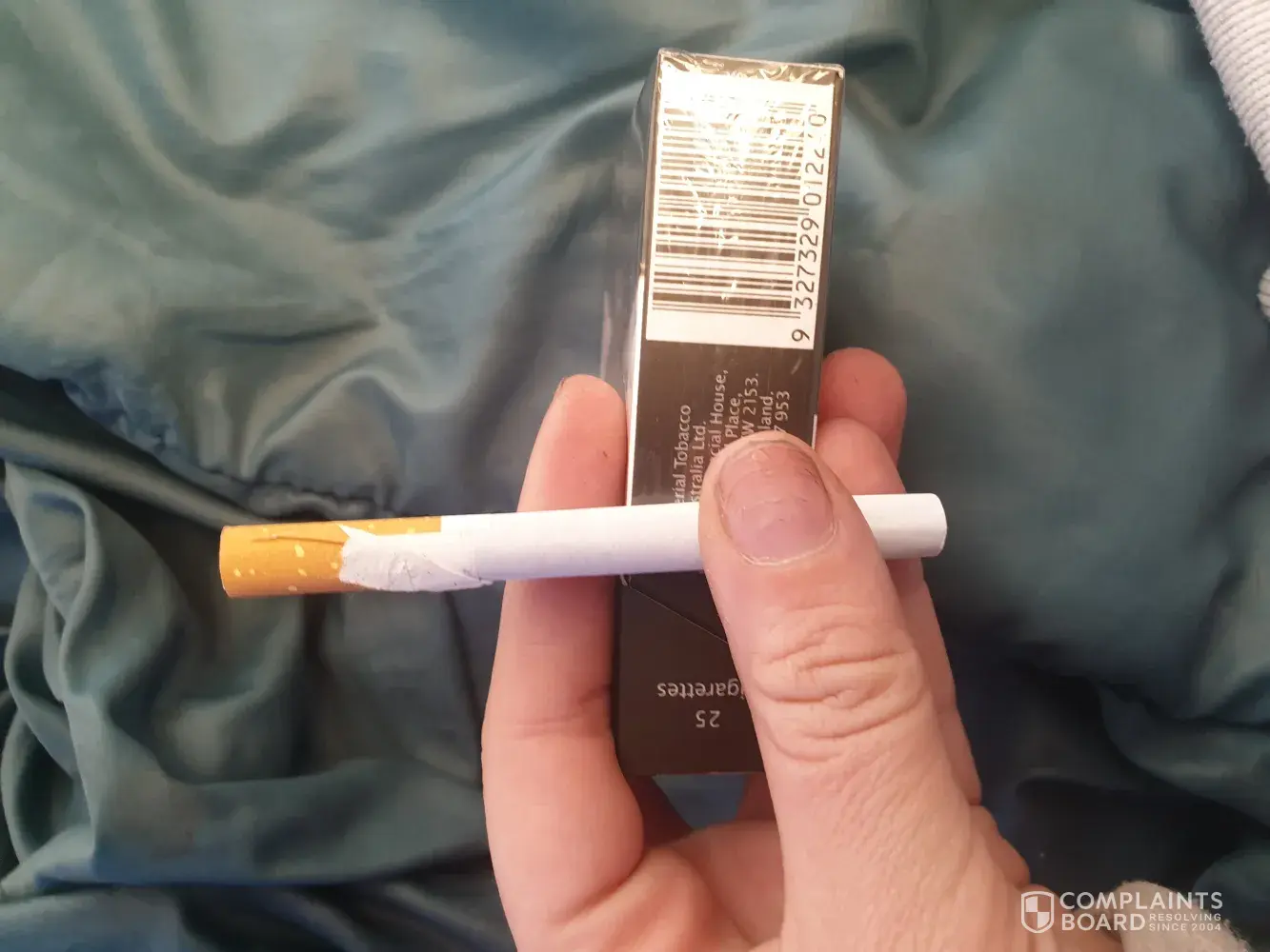 Hey my names adam and today I purchased a packet of my favourite brand to be left shocked and a tad upset as I realised 1 of my cigarettes wasnt actually connected to the filter. Now as a long time customer I feel a little let down with this mishap now please try your best to help me not try another brand as this isnt the first time this has happened. Specially as I dnt make a lot of money every smoke counts in my book.