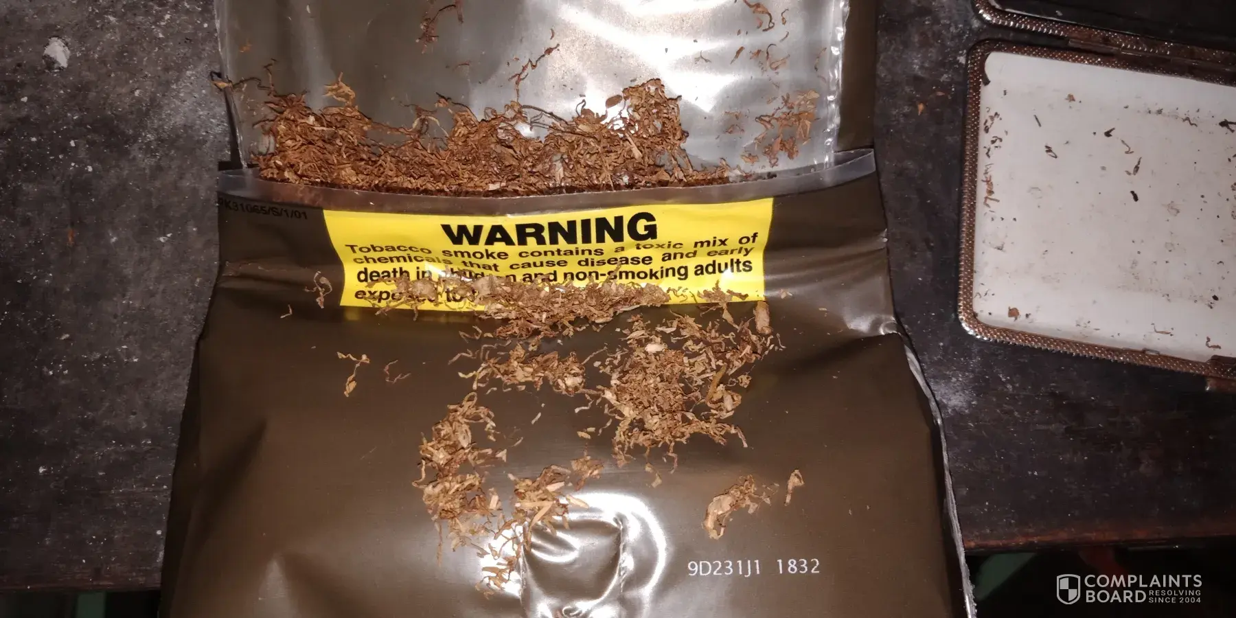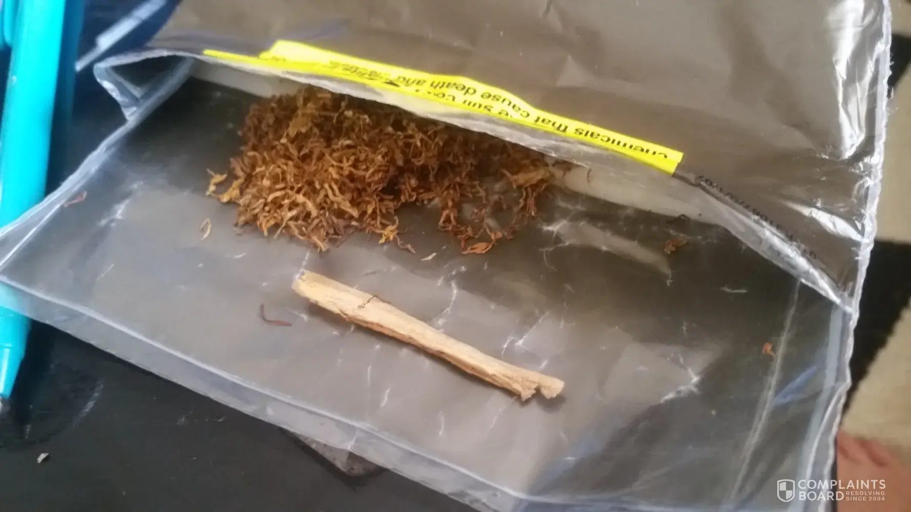 Hello i am writing to complain about the pouch of jps tobacco i bought a few days ago. I have found quite a few of woody bark chunks in the pouch, including one the length of my pinkie finger and i have not even smoked a quarter of the pouch yet.