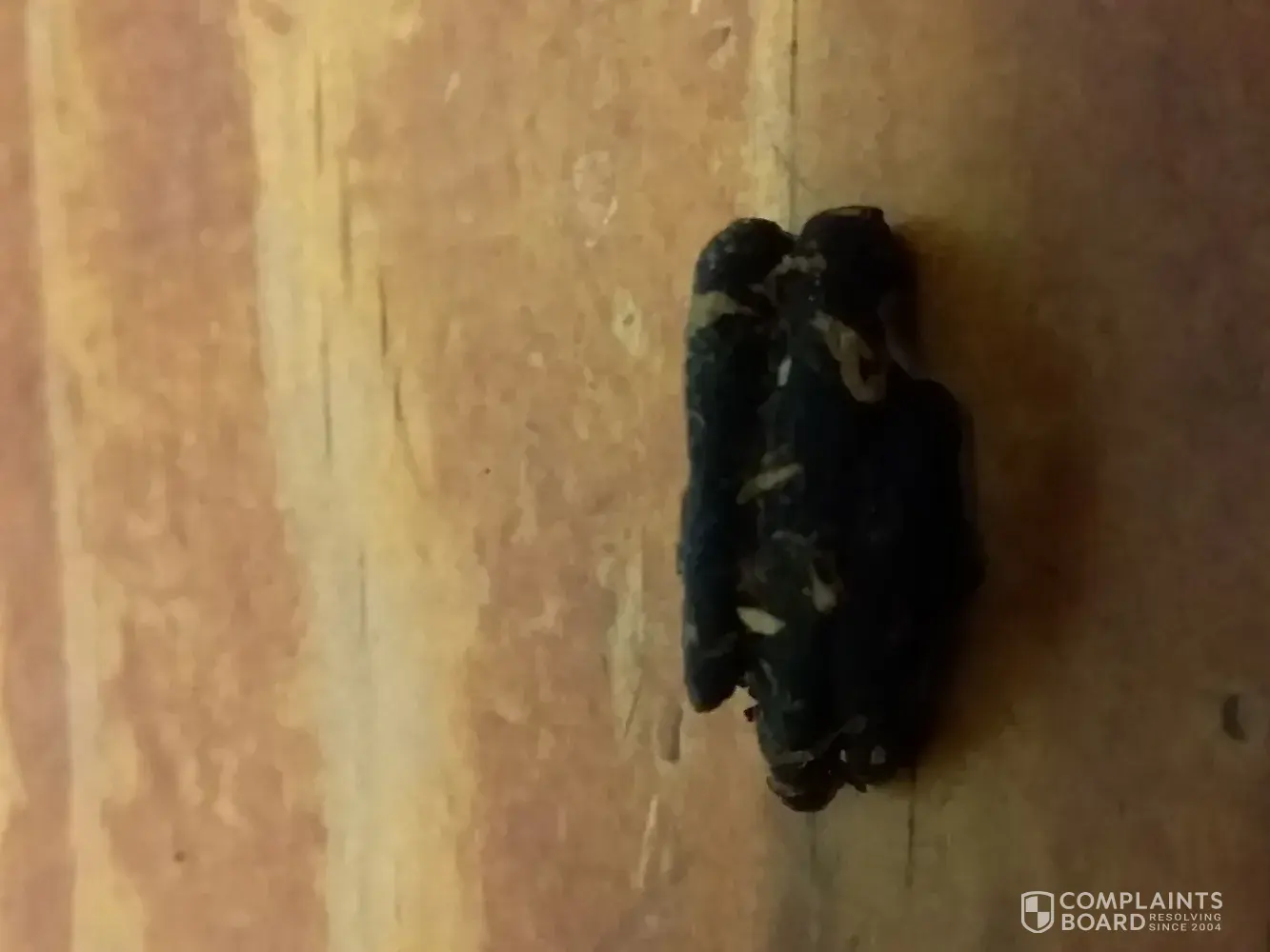 I discovered a large chunk of hard black material in my tobacco. I have taken pictures of it. It's about 12mm long and 5mm wide, it has a ribbed texture on outer surface. It appears to be from inside a pipe and it is the largest chunk of black stuff I have found in tobacco. I think I may have smoked some of the smaller pieces before I discovered this large piece. I did not suffer any adverse reactions to it but I am not pleased with it.