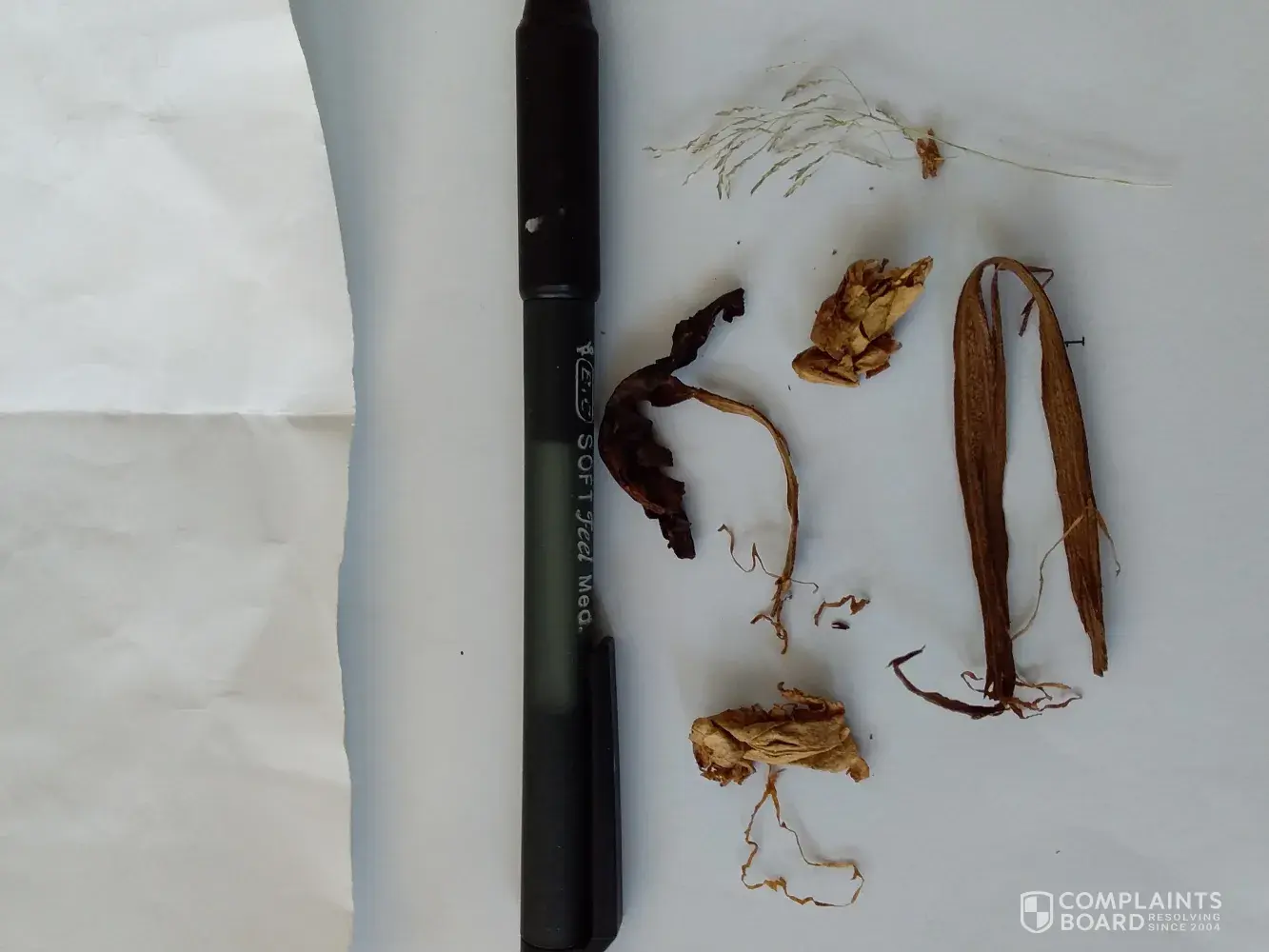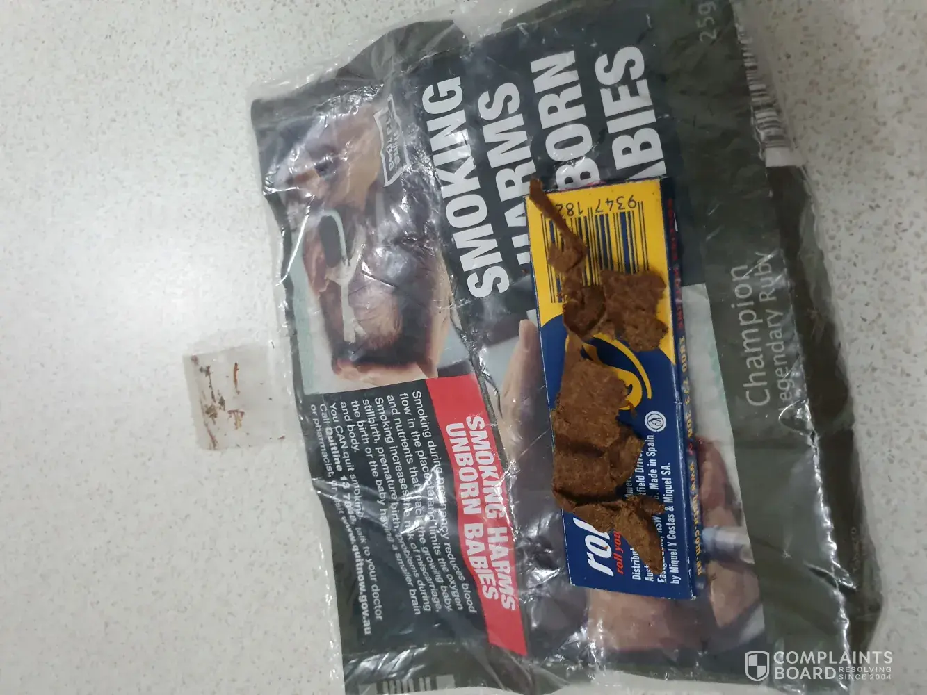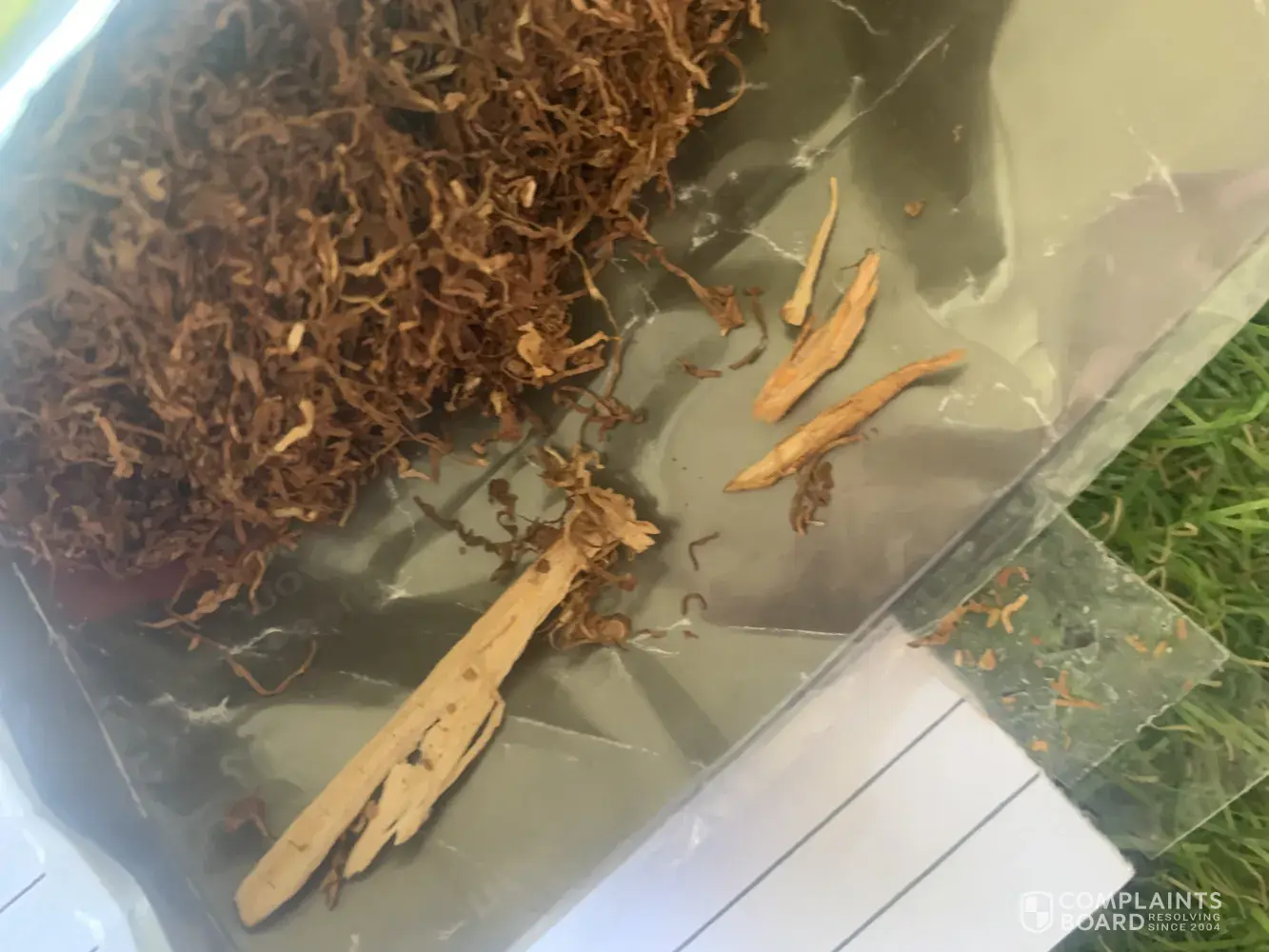 I am contacting you about the large bits of bark and other unidentifiable things i keep getting in my tobacco. Today i found that and also a seed head of some sort of grass. I pay alot for this product so i do not like it when i see i am paying for things i can not put in the cigarette. The other concern is that i assume the grass is a foreign species and i am well aware of what weeds can do to our environment and that our customs are very strict because of such things. I am not sure what i expect from this as i have never complained to a company before. The photo contains what i got out of my current 25g packet. I do not have a receipt on hand as i never take one but i only ever buy my tobacco from Rainbow Fuels Caloundra Qld and i could easily get proof of purchase if necessary. Regards Amy