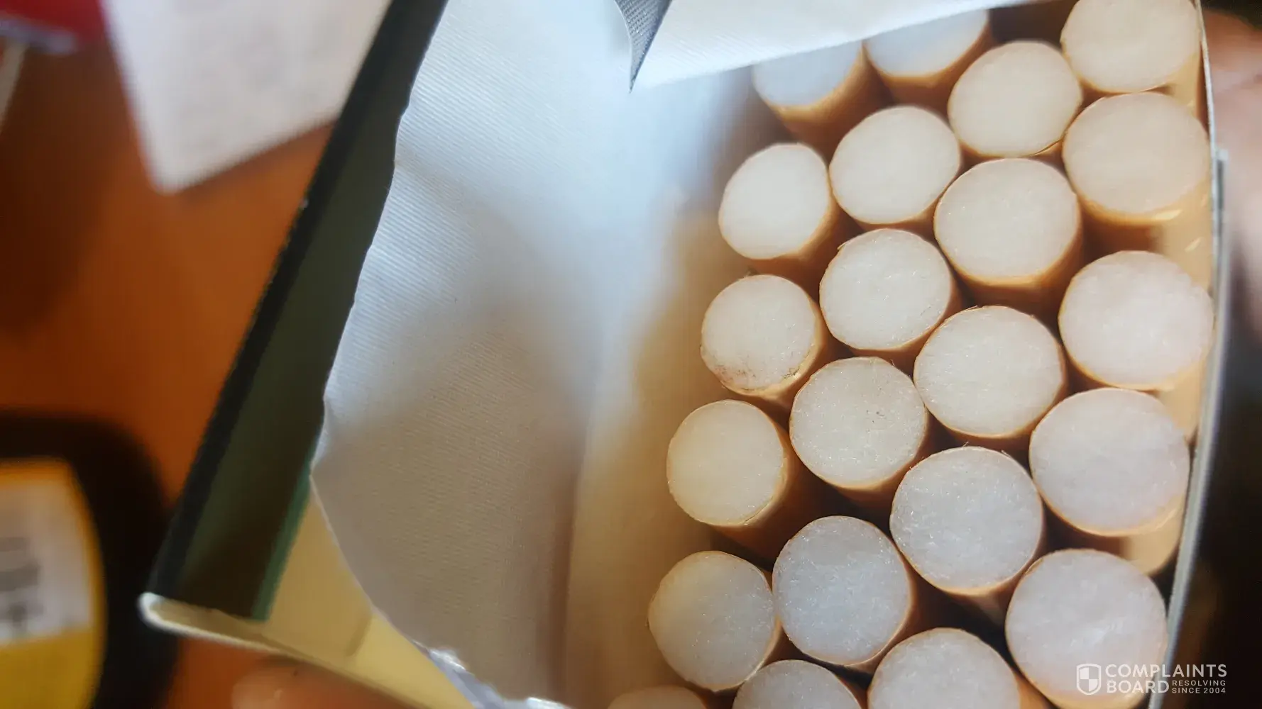 bought a carton last week 3pkts out the 10 could not smoke no menthol and tobacco was gisgusting a normal smoker couldnt even smoke them as i am a age pensioner this was a lot of cost to me also silver paper wouldnt pull out had to rip it i went back to tobaconist hoping for 3 pkts given back but they said to get intouch with you the no. on pack is 9c210s51211 dont know if that means anything.