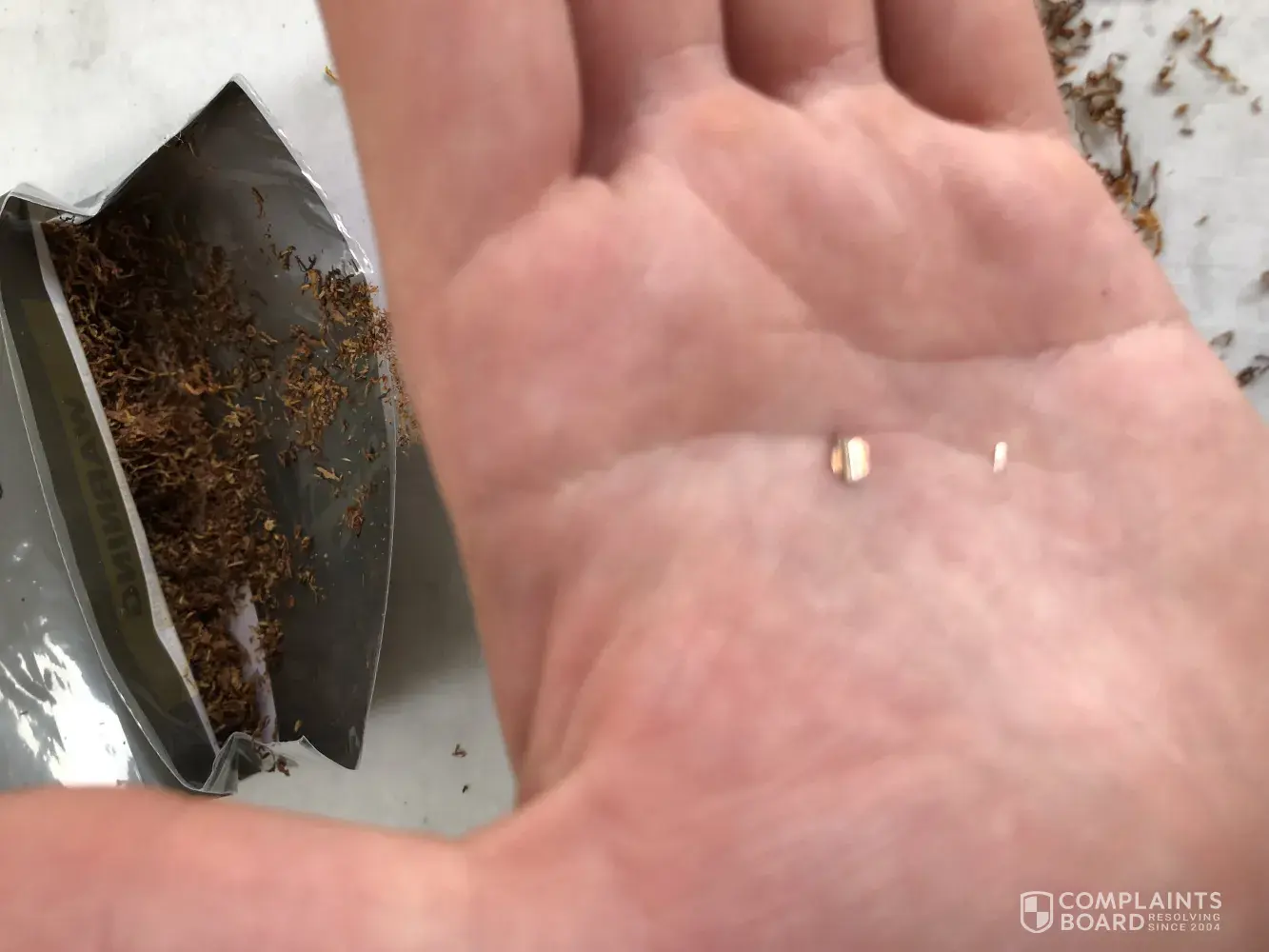 I sent a photo depicting all the crappy bits of tobacco that I throw out every time I purchase a pouch of your JPS Eternal red tobacco.