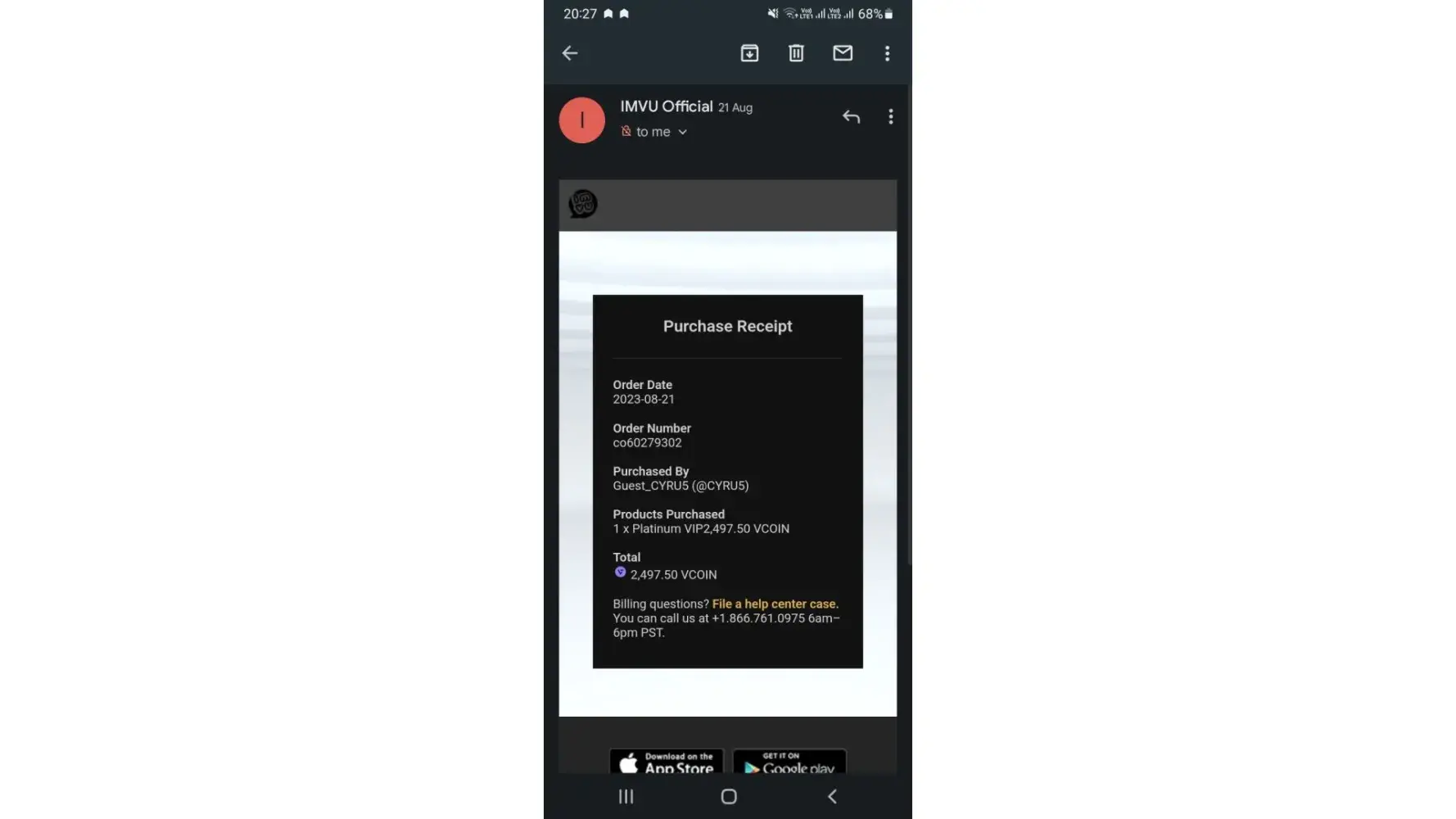 IMVU Badge Purchase that didn't actually happen