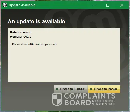 while it is true you have the right, after some time if the new version has security fixes they request it be updated. some versions have new access codes, when this happens any old codes that were not secure will cause this warning on their servers. i once had it happen, not banned but the warning that i had a wrong client and wasn't told to update. they understood and said download a fresh copy from the site. no ban happened thankfully for me.