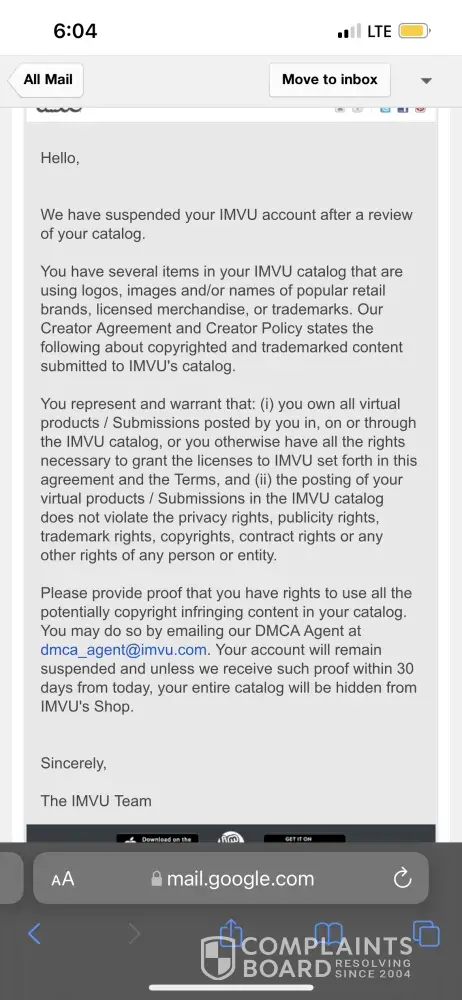 So I just got permanently banned today after playing for six years and spending over $100 on this game for using trademark logos when IMvU catalog is FULL of trademarked items and I'm sure none of those people have the rights to the items. I wasn't given any notice to remove my items or change them before they banned my account and this is unacceptable.