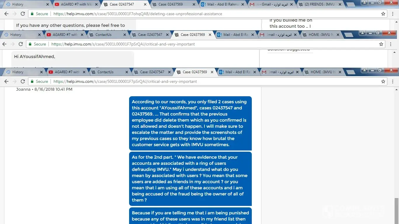 All cases and conversations with IMVU for both accounts are attached in this reply so everyone can see and raise awareness that IMVU is dangerous and do not spend 1$ cause you can suddenly lose everything in a second without doing anything to deserve it.