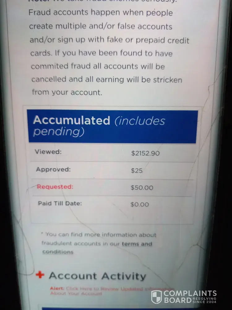 Well it's not allowing me to even open a ticket on there website to [censored] at them about not getting paid.. the website deducted the money from my account and shows it as a request amount by it I can't get any further not can u find anyone to talk to about it. I requested payment two wks ago only to see it's not even looking as if I'm got a pay date.it just says N/A. Wtf does that mean I'm m ni to eligibil for payment. It only took a few years to get to the 50 cash out due to money being subtracted from my account and never being able to contact customer support ever with this company...I feel a lawsuit should be brought against these scammers