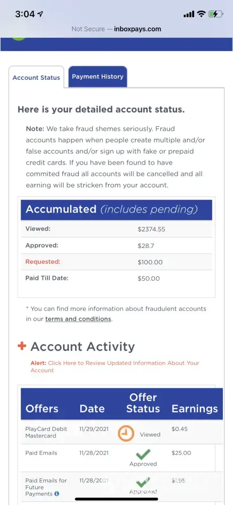I'm not being paid from inbox pays. Once we hit the amount of 50 dollars we are supposed to be able to cash out. I am at 83 dollars and still can't cash out. I've sent a support ticket and get no response I would like to be paid for the work and time I've invested and just want what is owed. One of my biggest complaints is about payment. Im still waiting for their paid offer rewards to show up in my account. InboxPays won't allow me to cash out my earnings even though I met the requirements