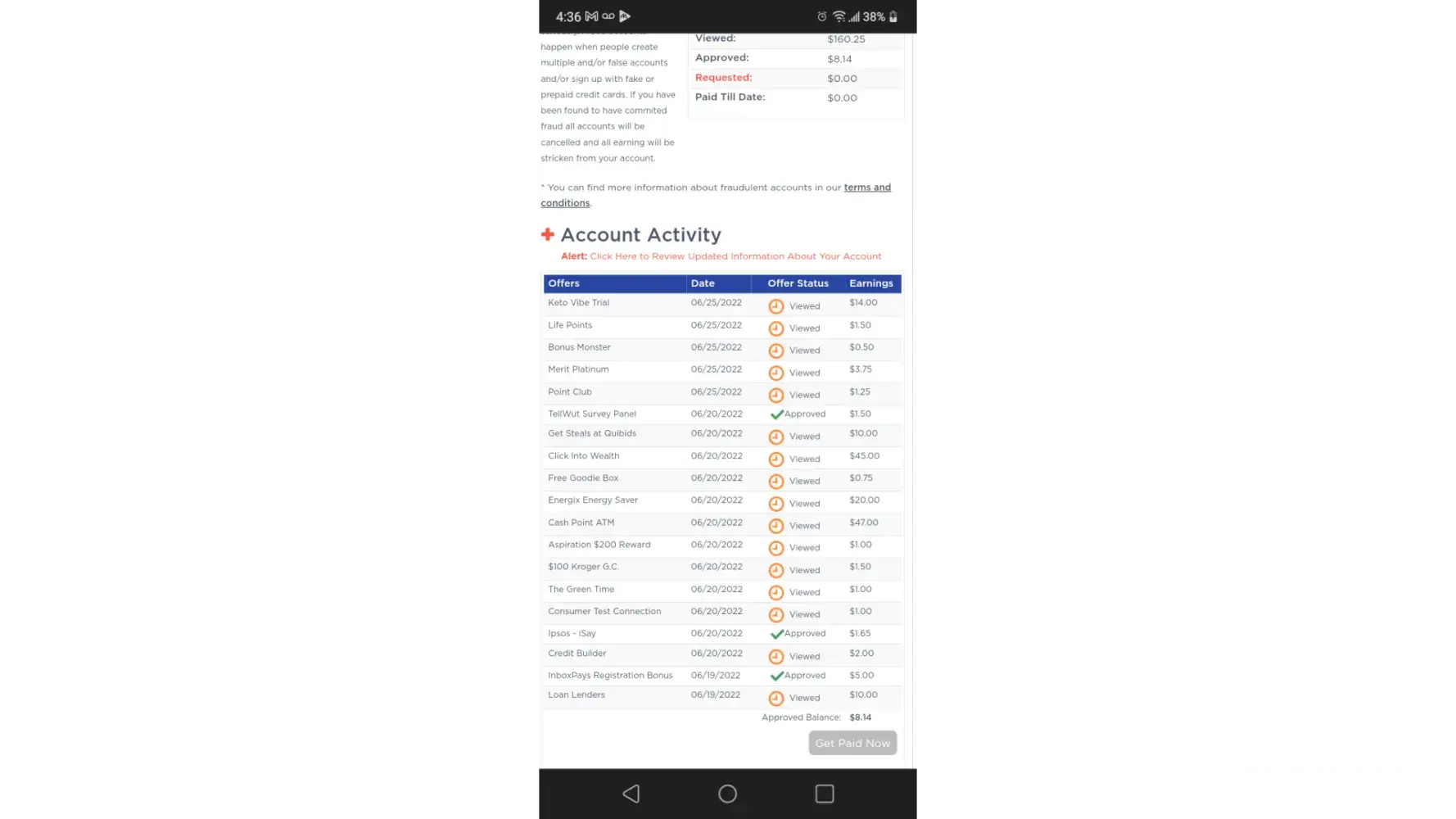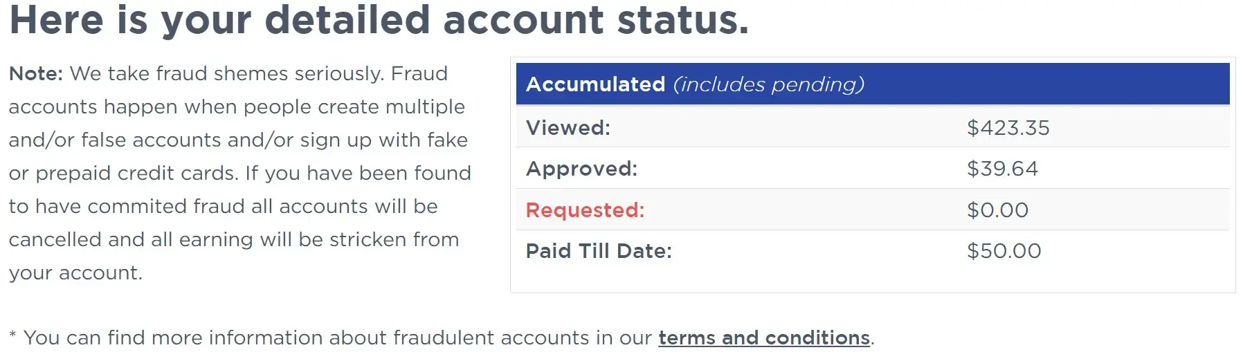 Desired outcome: I would just like them to pay up what I have earned (41.39) and I will leave the site and I will make sure everyone knows not to join it.