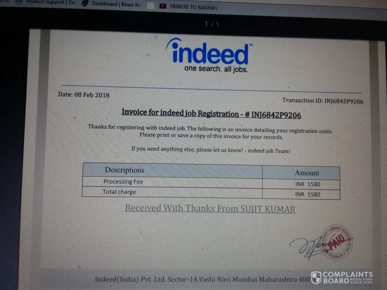 This is a complaint with regards to online fraud and cheating by Indeed employees from contact nos : #[protected] (Indeed paid services / Airtel / Delhi) & # [protected] (Airtel / Delhi)