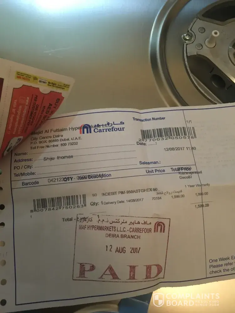 I will never again by any indesit products as I lost the trust with your brand also I will spread the words through my contacts and social media, news agencies that you are cheating customers.