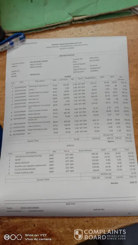 I wish to complain about Staff of Yamaha Tanay.