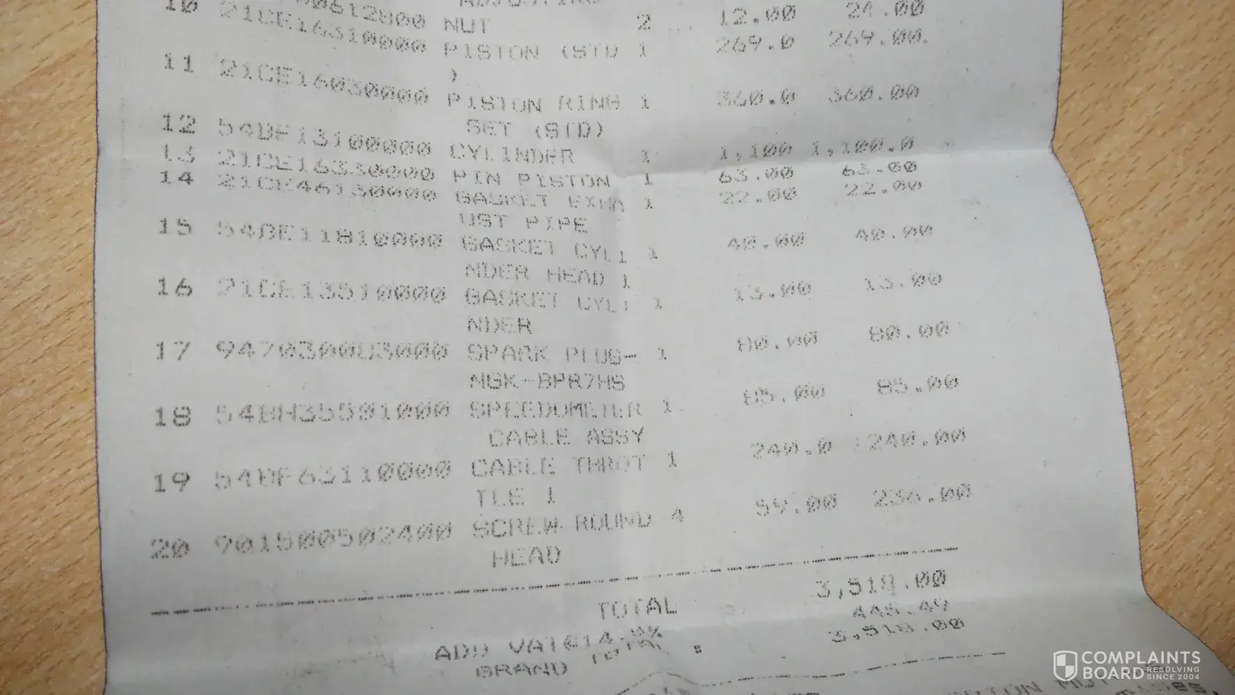 Then On your advise, i bought the bike back to Shaili yamaha with an assurance from the dealeryourself that it will be taken care of this time.