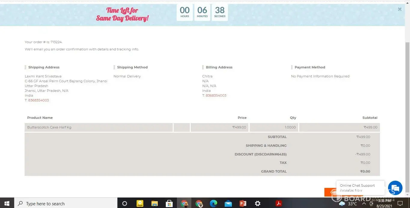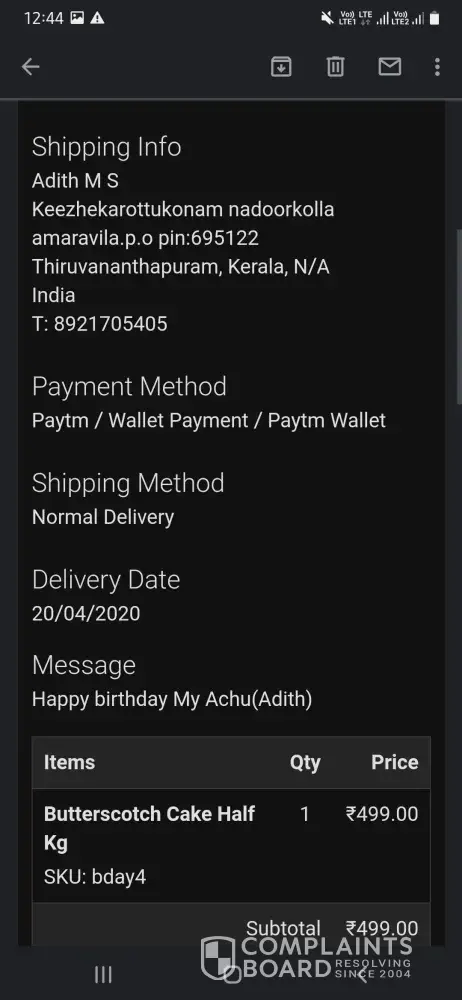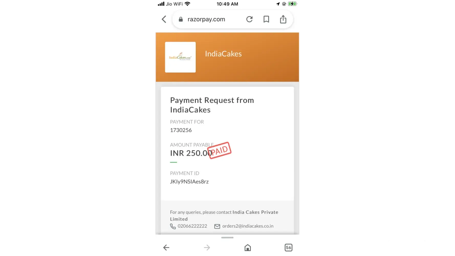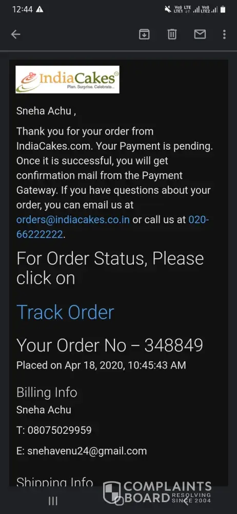As it stands, my money has been deducted, the order remains undelivered, and I have yet to receive any communication or resolution from "indiacakes.com."