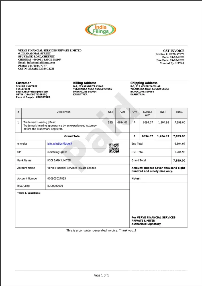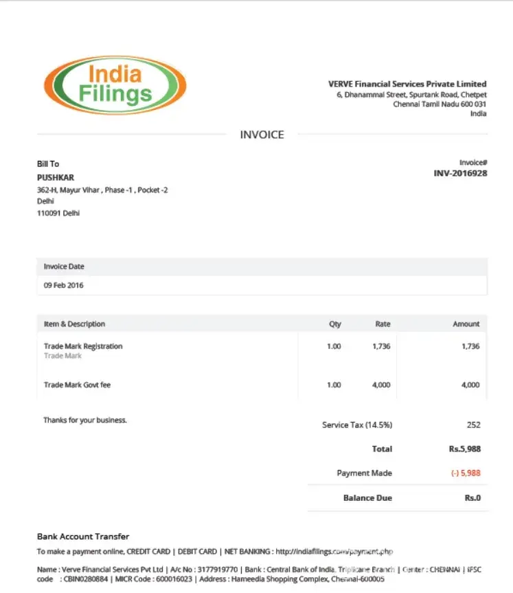 I approached India Filings team to register my musical group Krishnadhwani for which I paid Rs5988 on 9FEB 2016