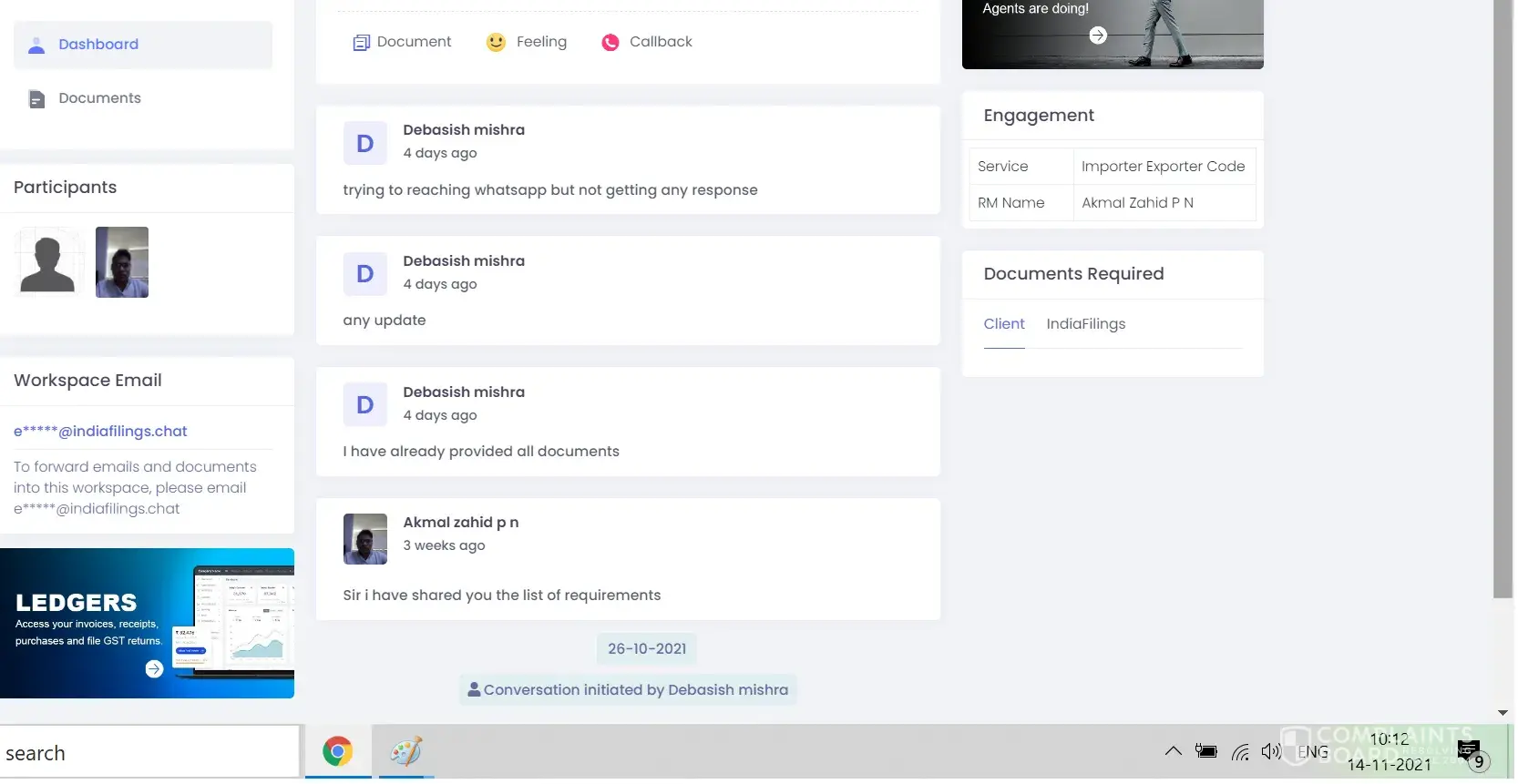 On 25th October 21 I made payment towards annual returns filing. Mr.Aliph acknowledged the receipt but no action taken after that. I shared my current account and savings statement but till now there is no response.