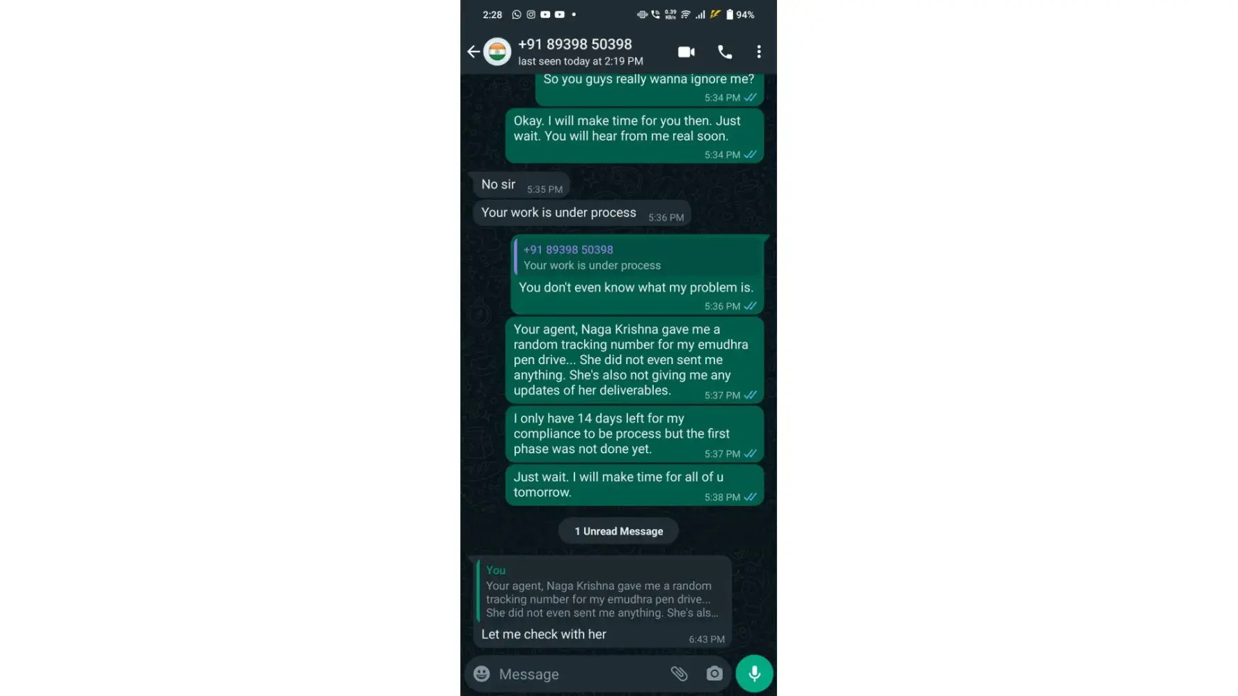I was assigned to an agent named naga krishna. This is her company contact number [protected] and she even blocked me from calling her. Even her manager is unresponsive. They just say yes then they will not update u with anything.
