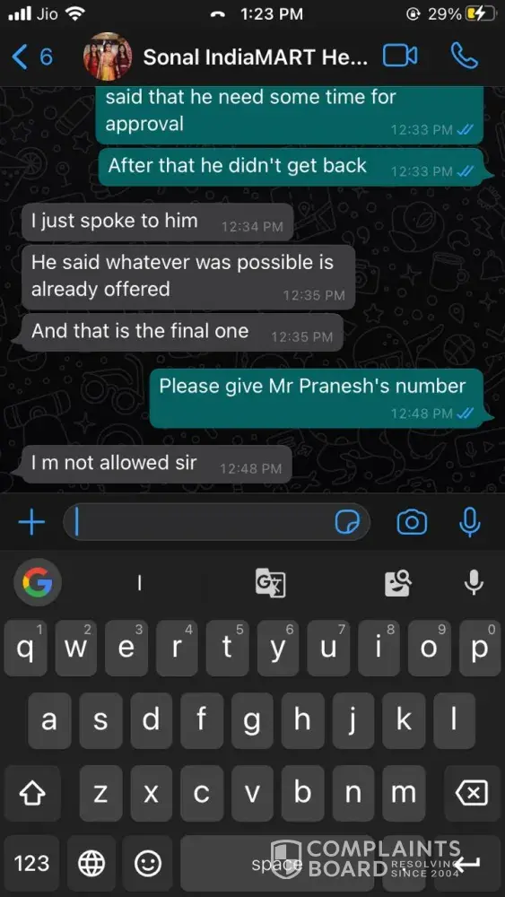 Furthermore, I feel that Indiamart is not customer-friendly when it comes to disputes. They won't act against delisting unprofessional vendors even when brought to their attention. Indiamart is an advertising and listing company paid by vendors. Customers are their products, and even when treated unprofessionally, they turn a blind eye towards it.