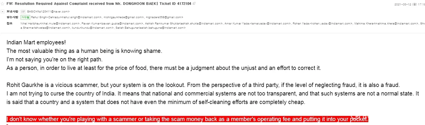 To be precise, a scammer named Rohit Gaurkhede from RG TRADERS uses India Mart to cheat.