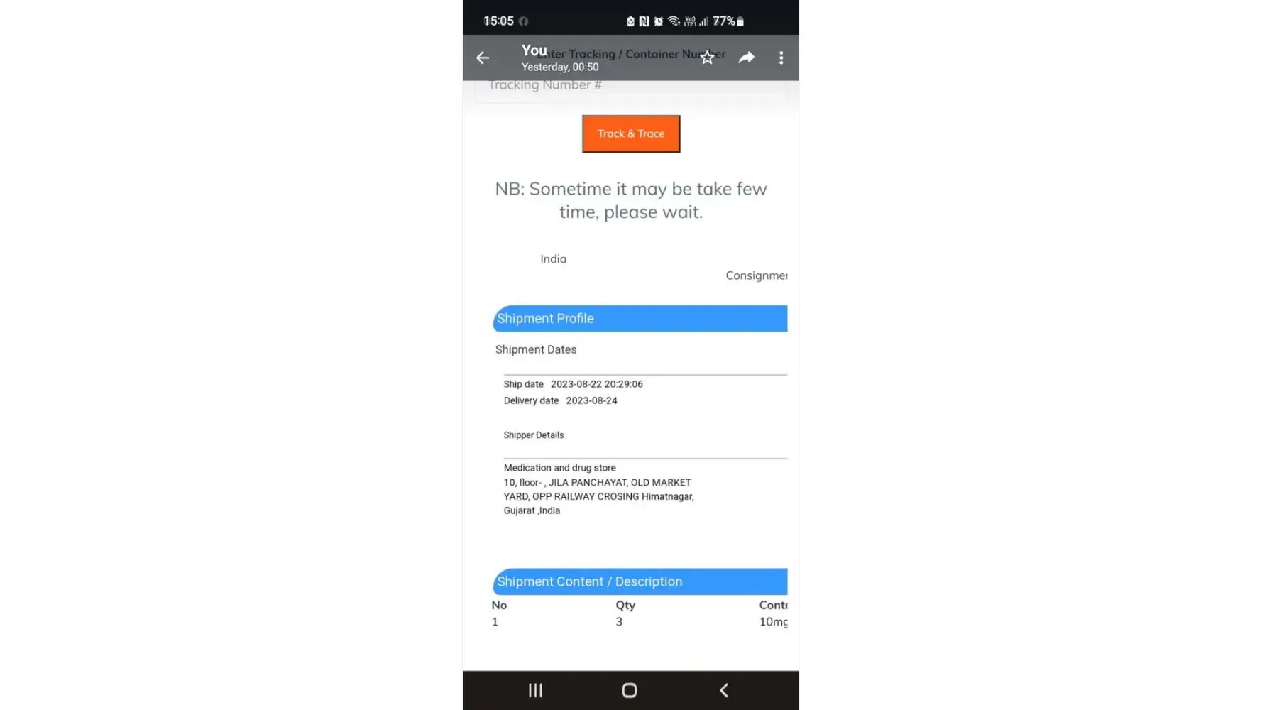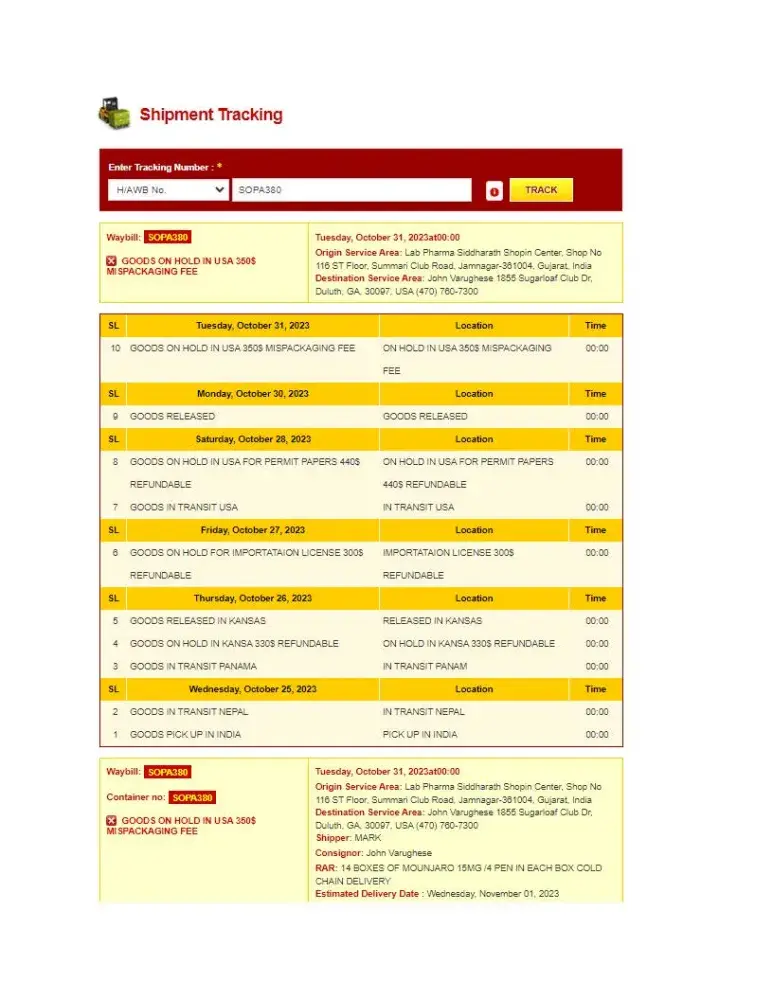 I decided to check the tracking information through elite courier, which is also owned by IndiaMART. To my surprise, the tracking information stated that my shipment was on hold in Mexico. The reason given was that I needed to pay a $128 fee to import medical goods due to a COVID-19 import fee. This was a red flag for me, as I had never heard of such a fee before.