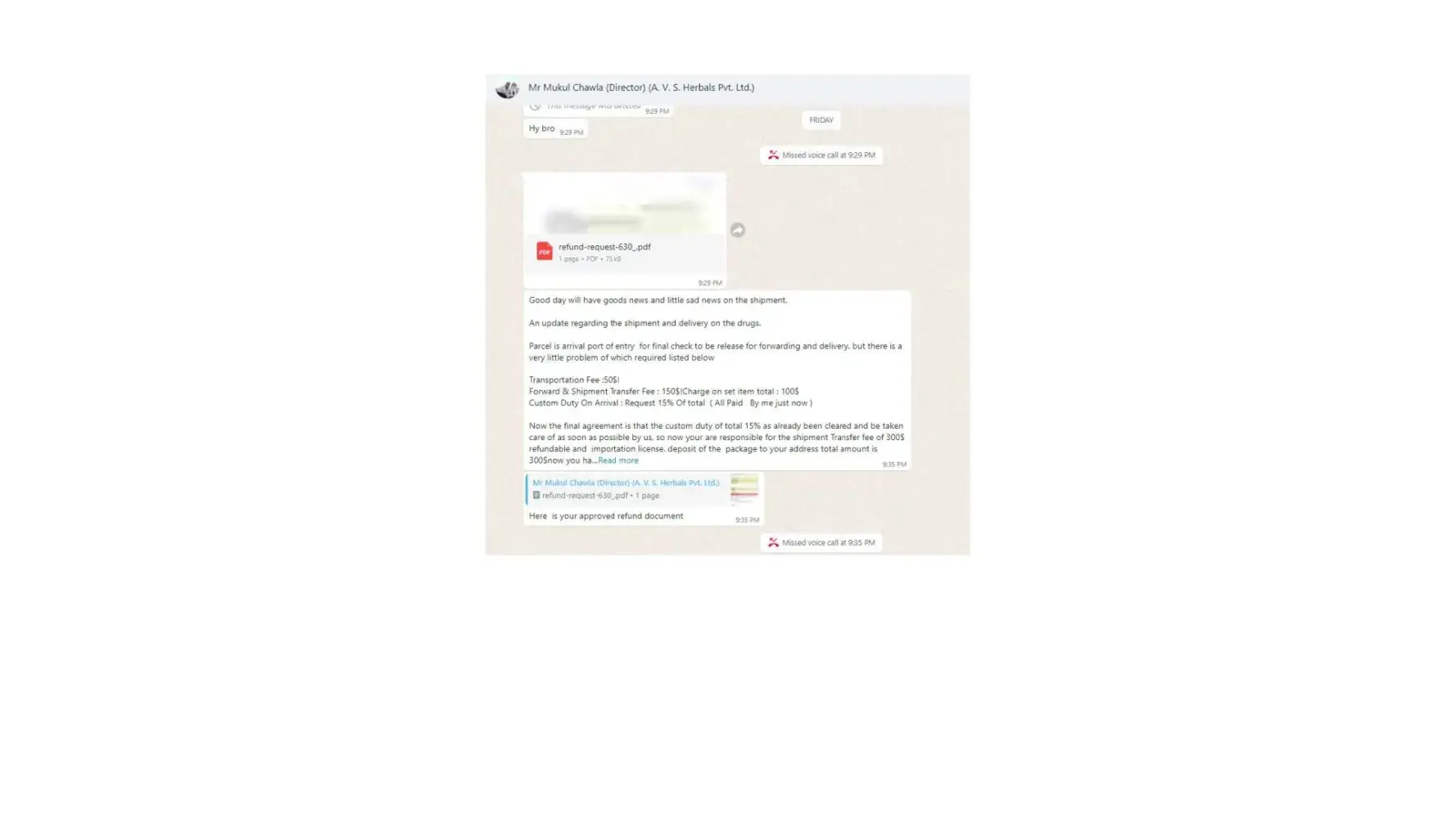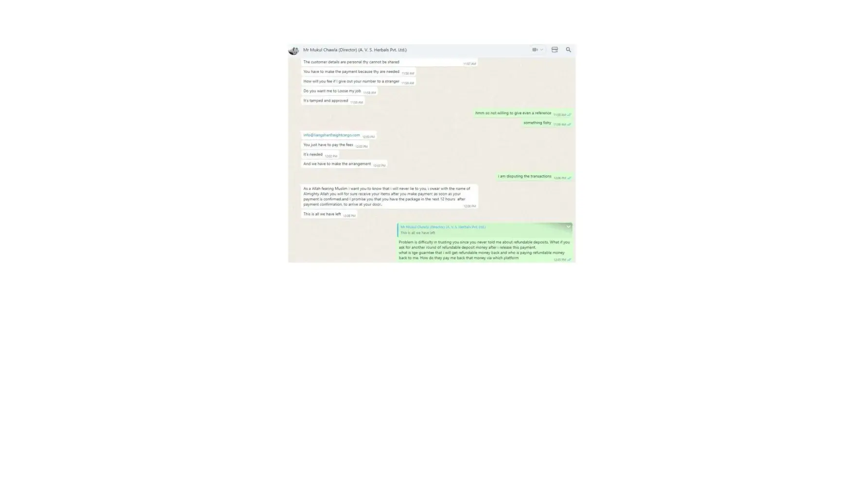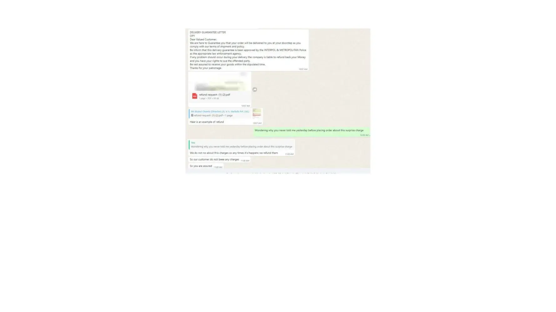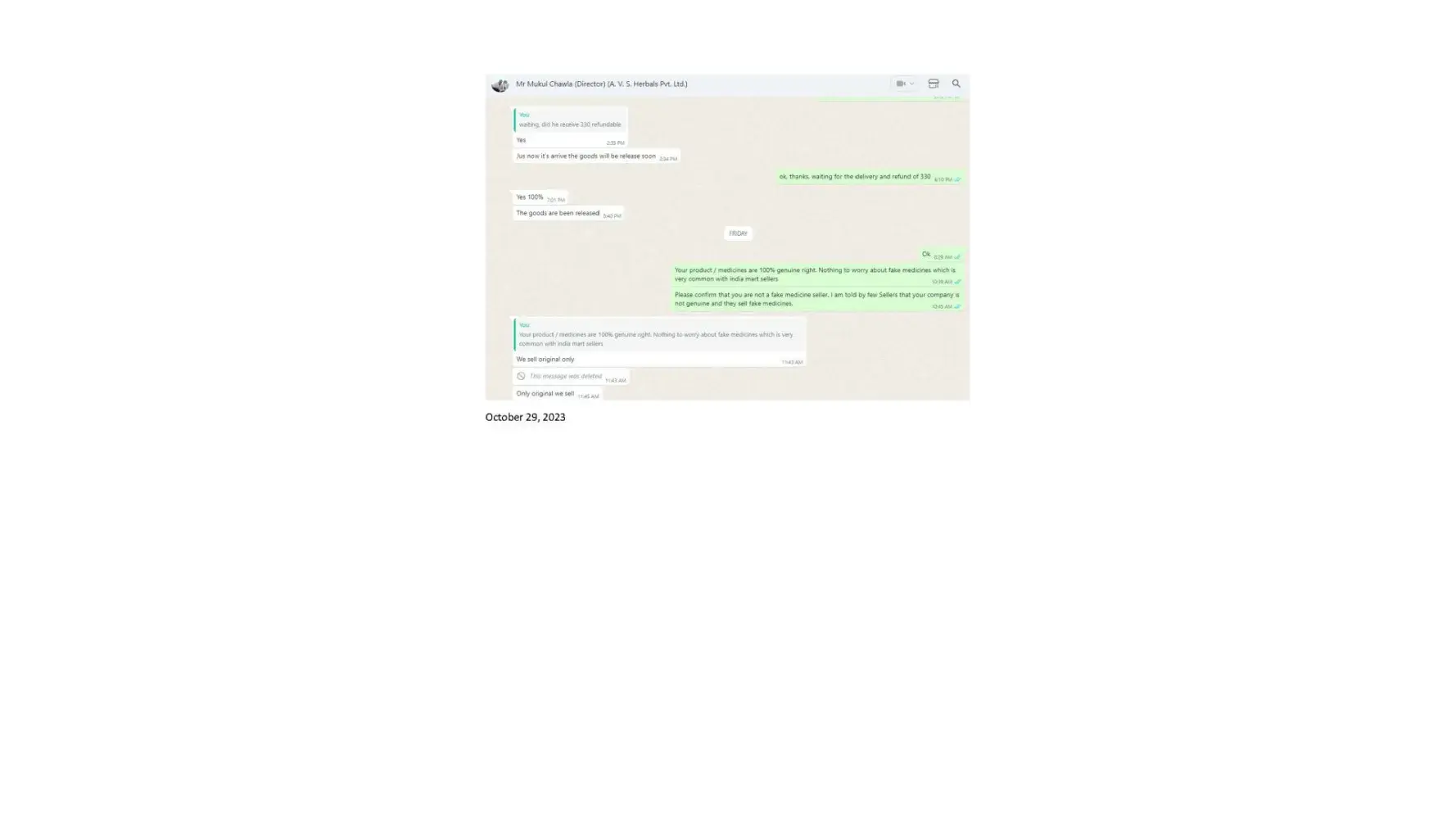 Dear Sir/Madam, I am writing to formally lodge a complaint and express my profound dissatisfaction regarding the deceptive business practices carried out by Mr. Mukul Chawla, Director of A.V. S. Herbals Private Limited, and Gnex Lab Pharma (importer). The interactions and discussions framed within the context of a business transaction have raised...