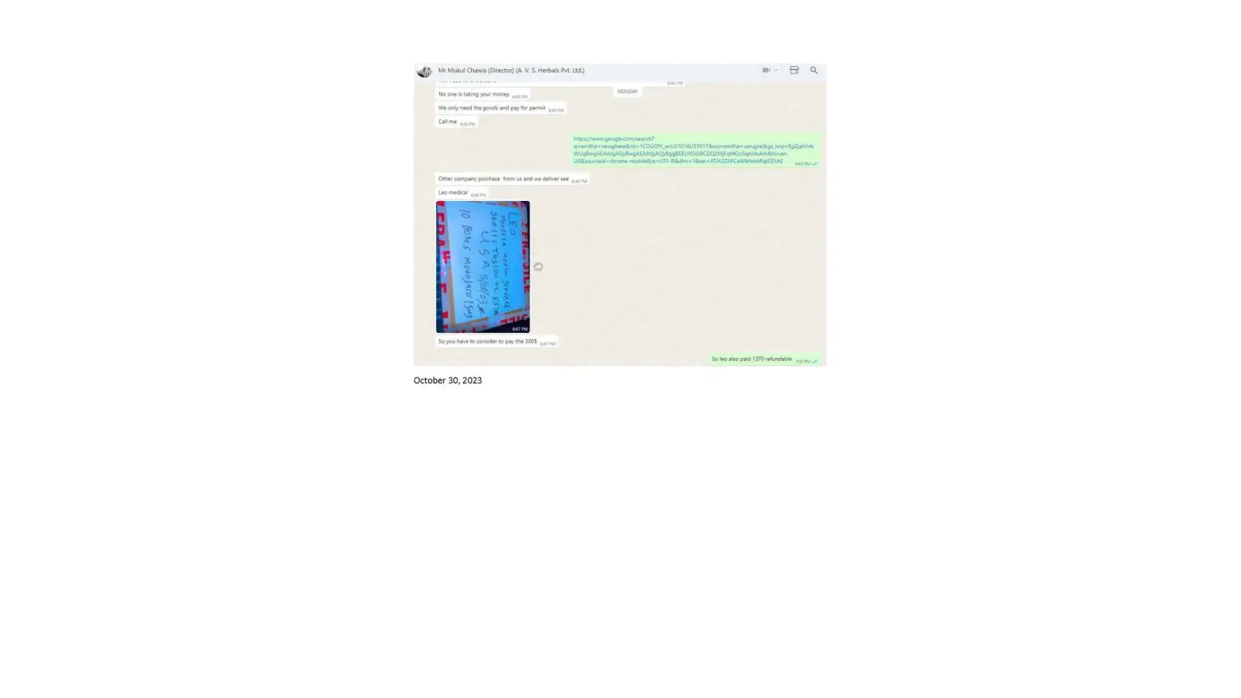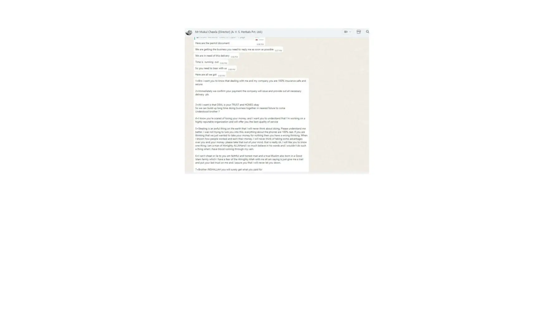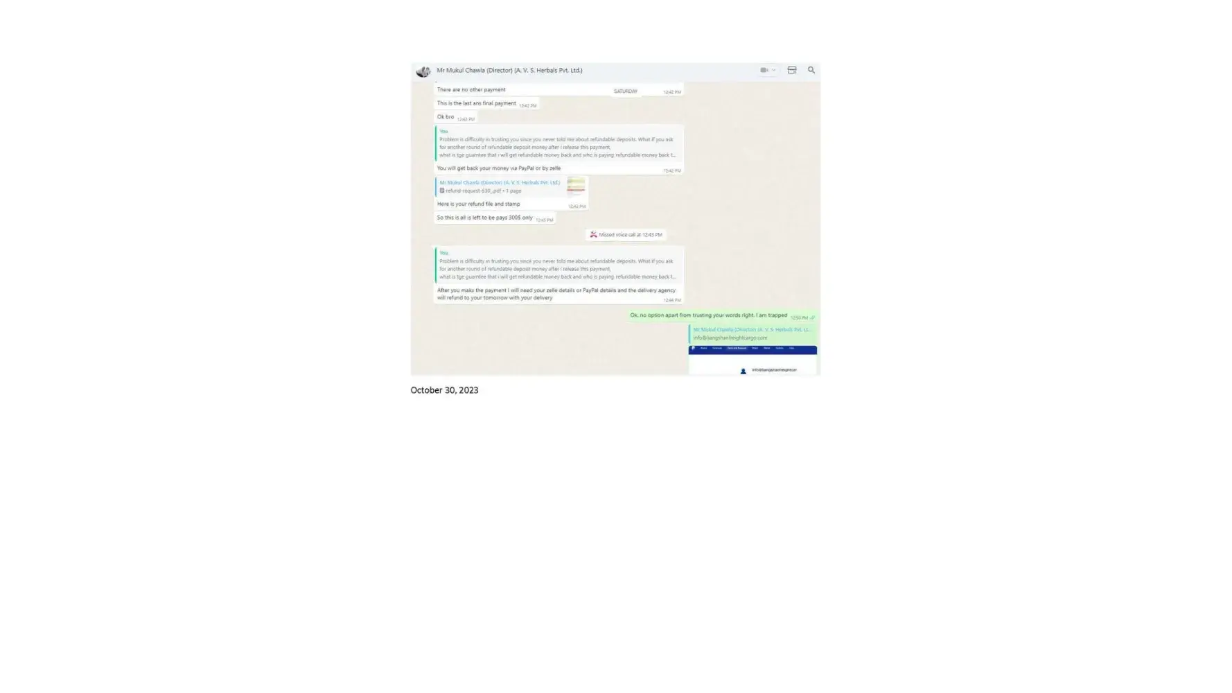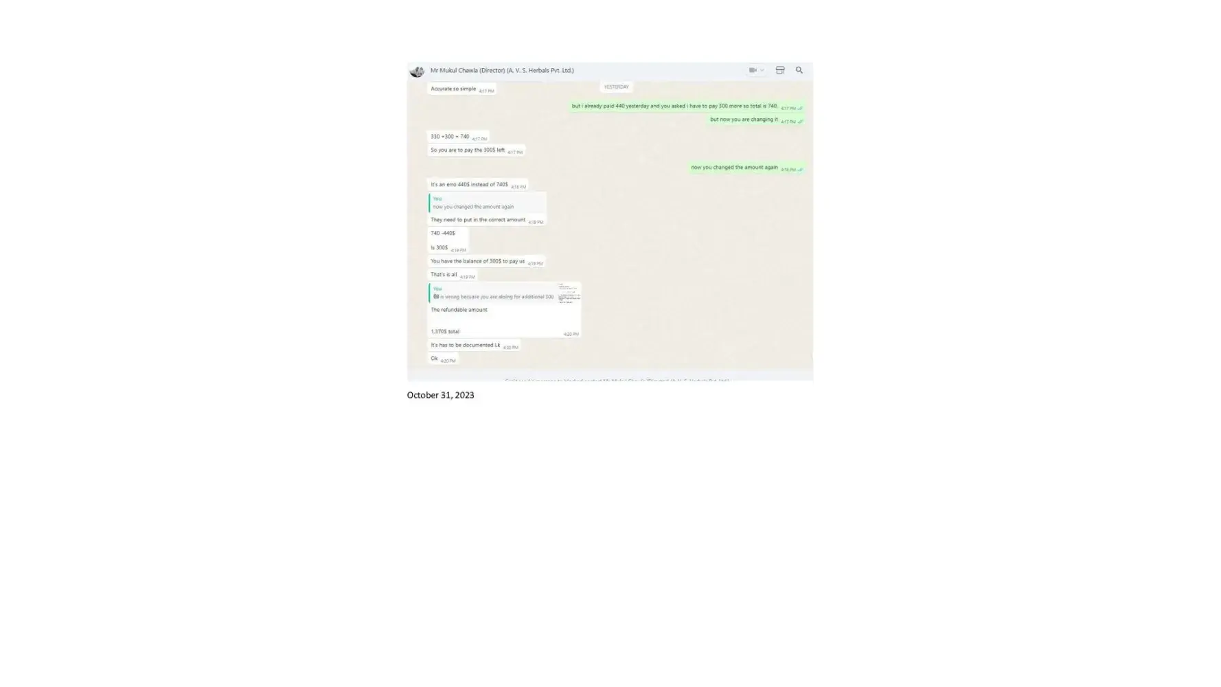 Dear Sir/Madam, I am writing to formally lodge a complaint and express my profound dissatisfaction regarding the deceptive business practices carried out by Mr. Mukul Chawla, Director of A.V. S. Herbals Private Limited, and Gnex Lab Pharma (importer). The interactions and discussions framed within the context of a business transaction have raised...