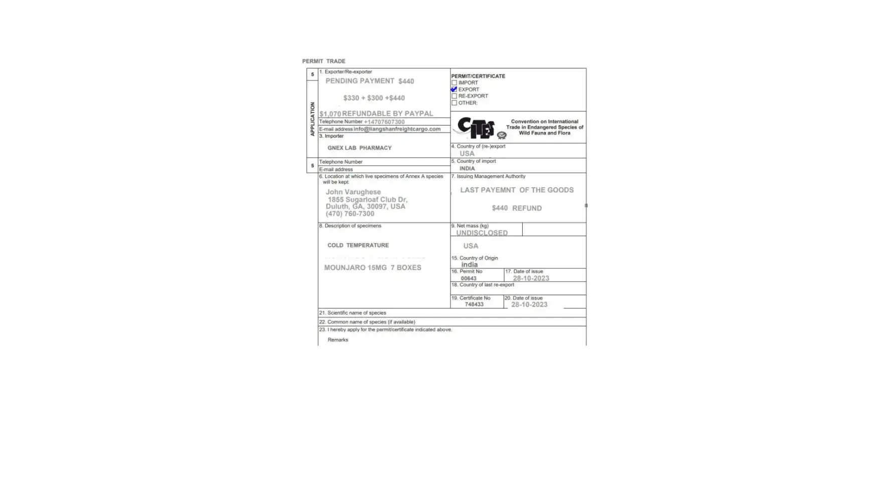 Both the seller and the shipper contacted me at the same time, which seemed suspicious to me. I refused to pay the fee for four days, but eventually had no other choice but to pay it. After making the payment, they asked me to pay ***/- more for late payment and storage charges. Despite making the payment, I still haven't received my package.