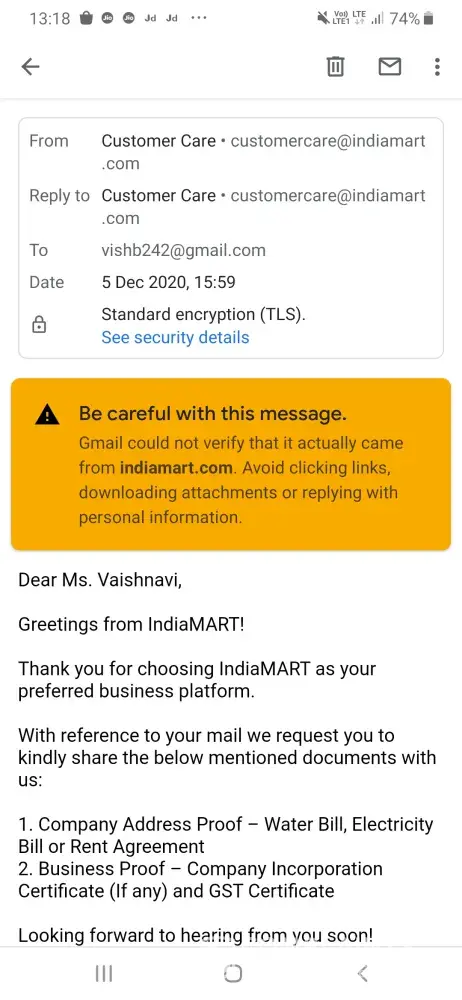 Just for verification, its required, but when i said that I dont have, your executive was fine with it, because i had uploaded Pan Card and Aadhar Card, Bank Statement, My Website Link etc for KYC purpose, I had mailed to Indiamart already,